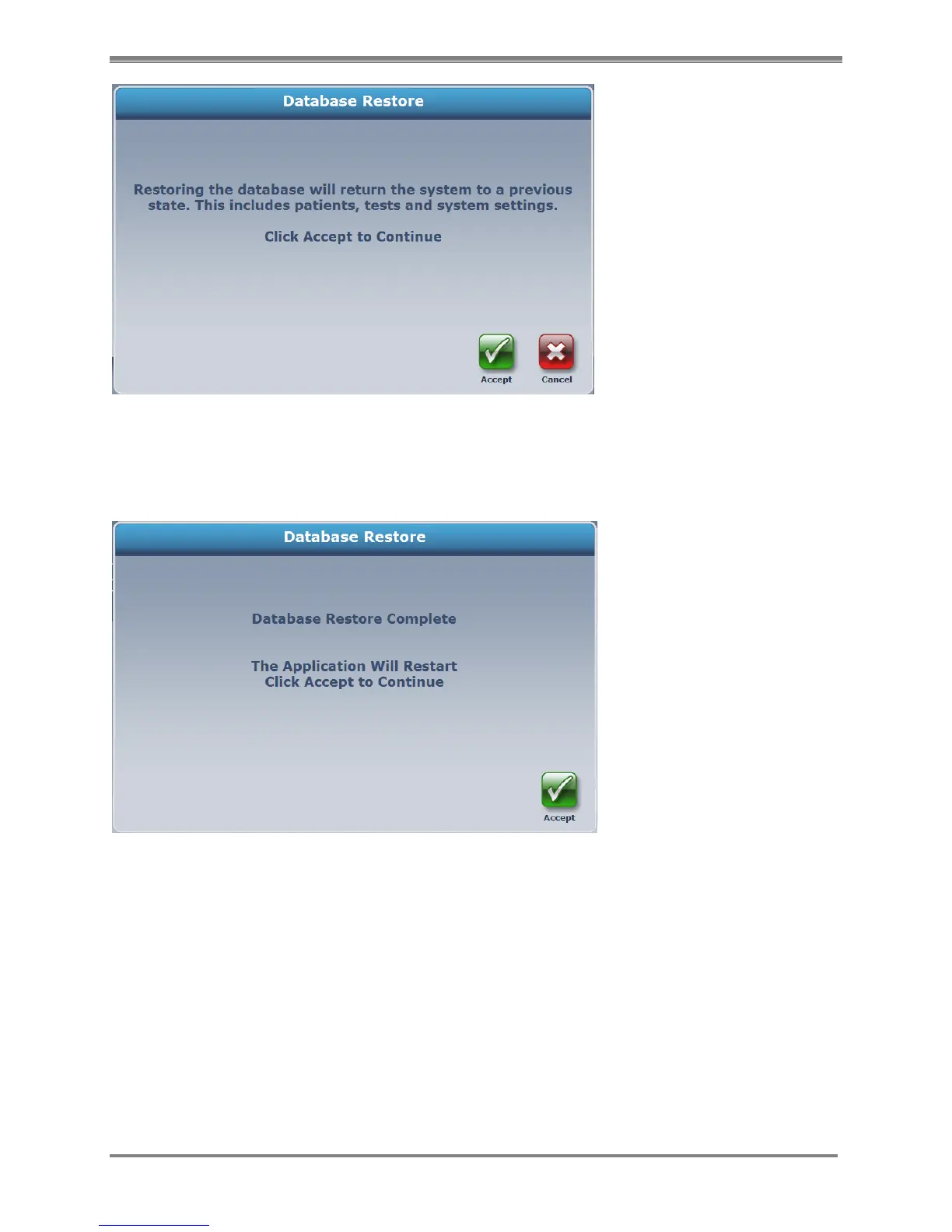 Figure 4.40. Database Restore Accept / Cancel screen.