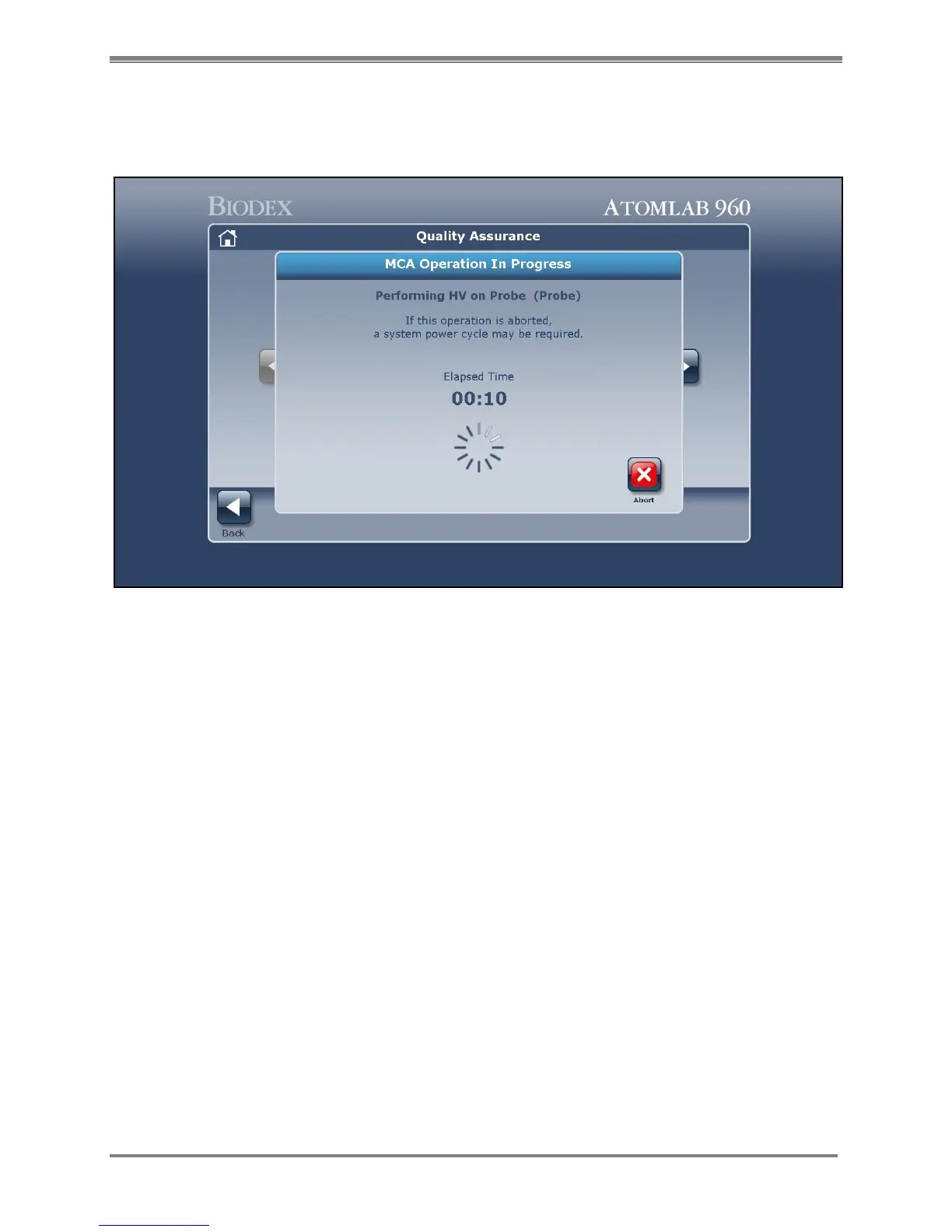 Figure 5.5. The MCA Operation In Progress screen is displayed while high voltage measurement is being performed.