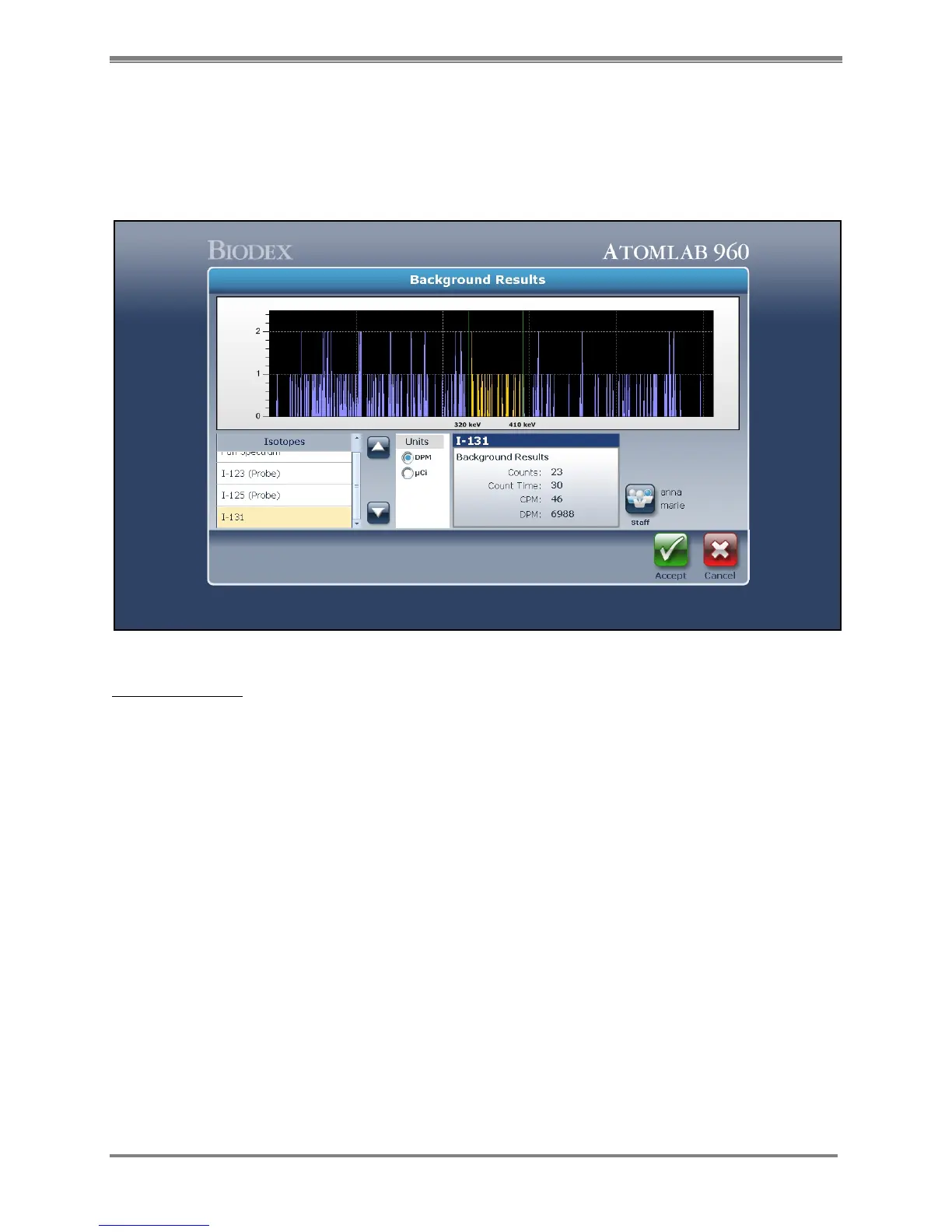 screen. Ensure there are no sources near the detector and select <Accept>.