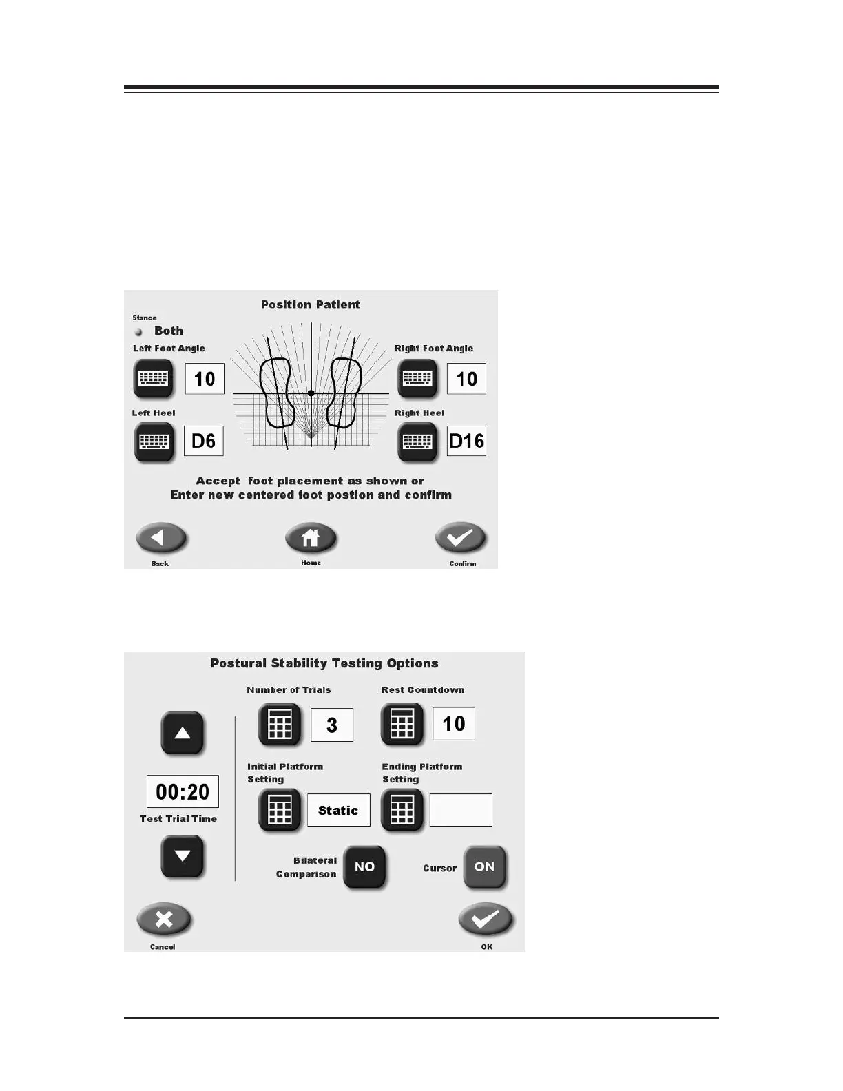 Figure 8.3. The Postural Stability Testing Options screen.