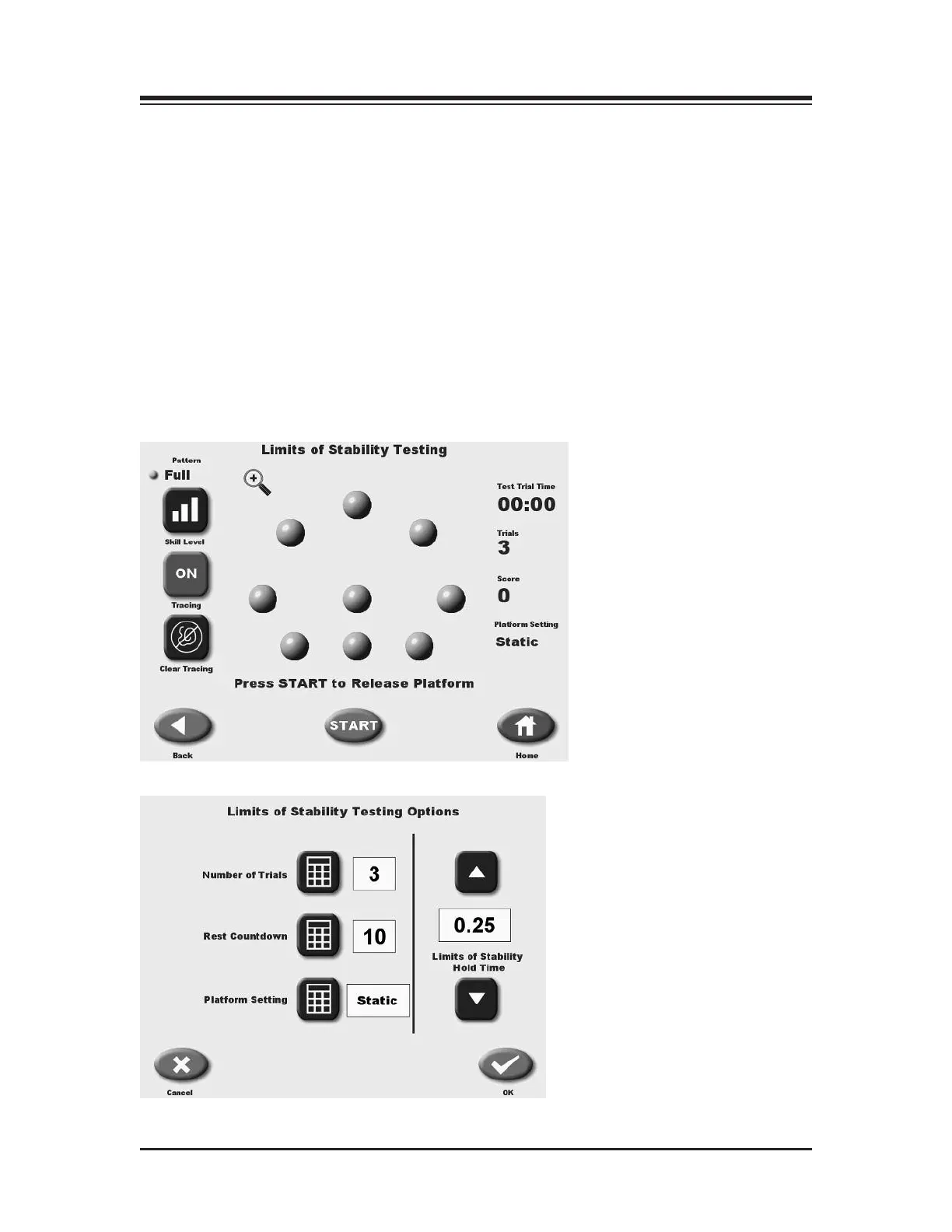 Figure 8.7. The Limits of Stability Testing Options screen.