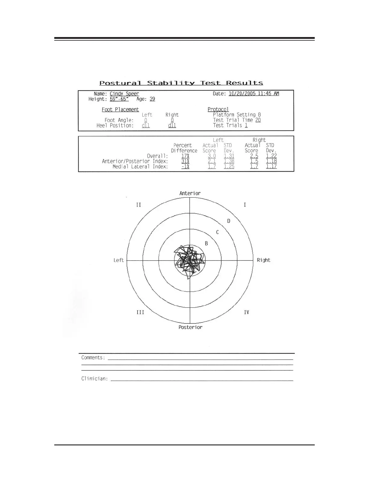 9-2: Sample Postural Stability Bilateral Comparison Test Report.