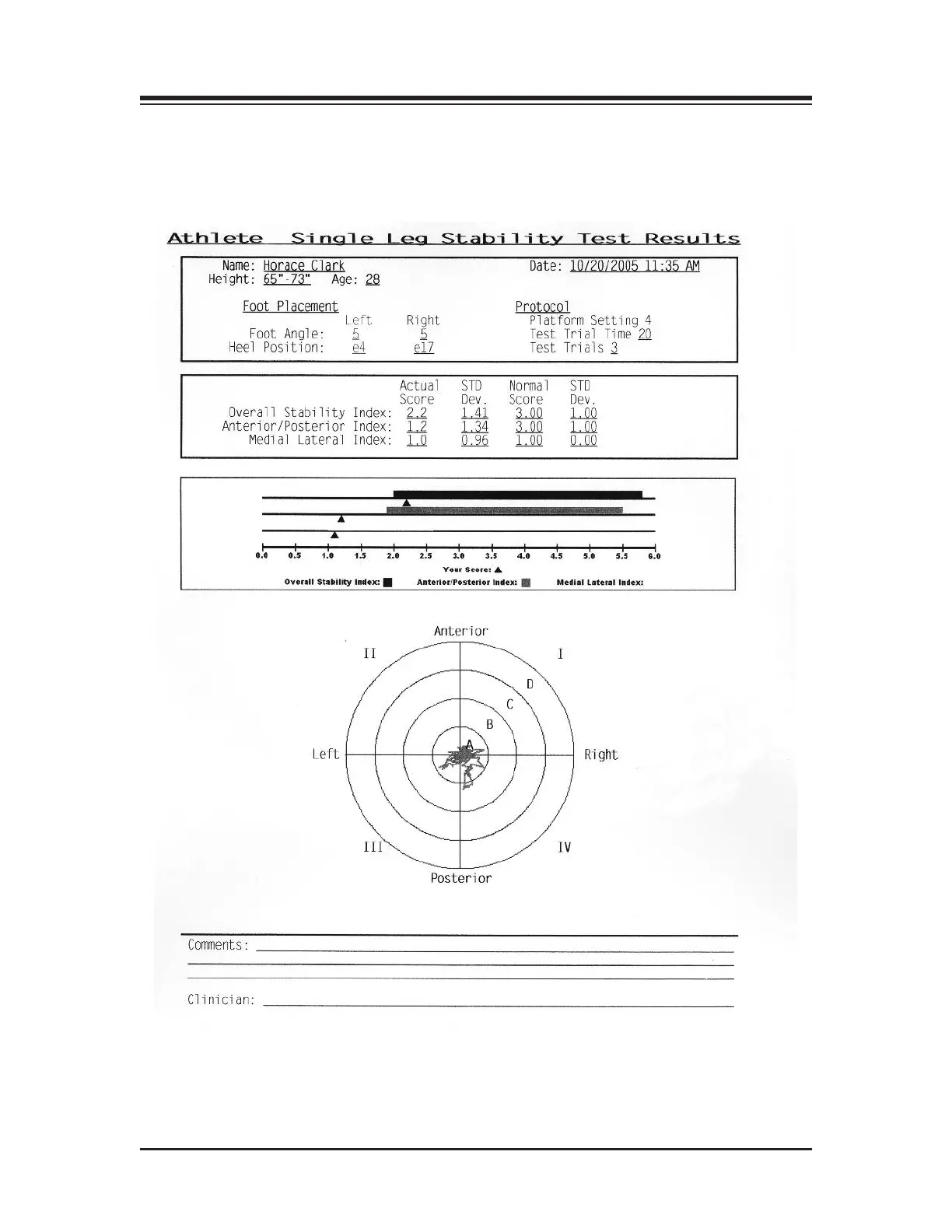 biodex BALANCE SYSTEM SD - Athlete Single Leg Stability Test Results