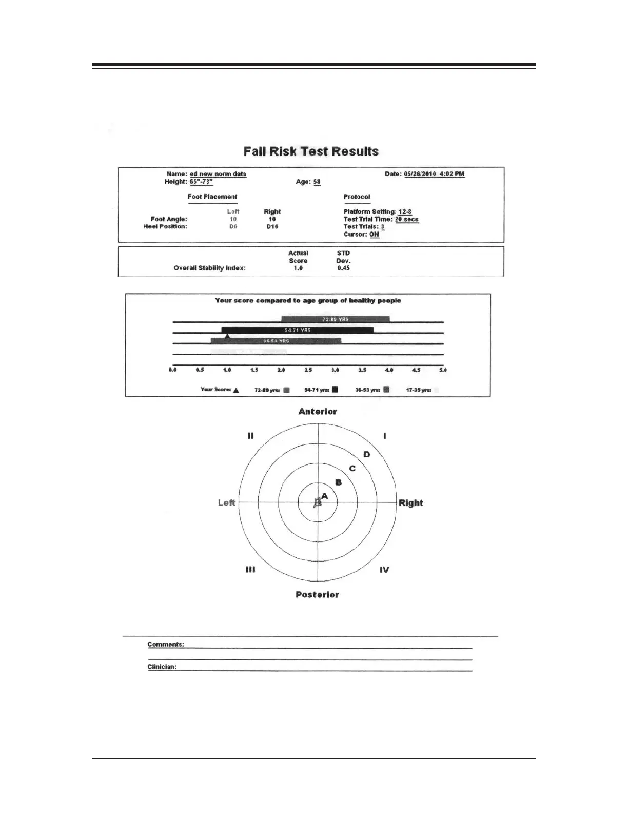 biodex BALANCE SYSTEM SD - Fall Risk Test Results