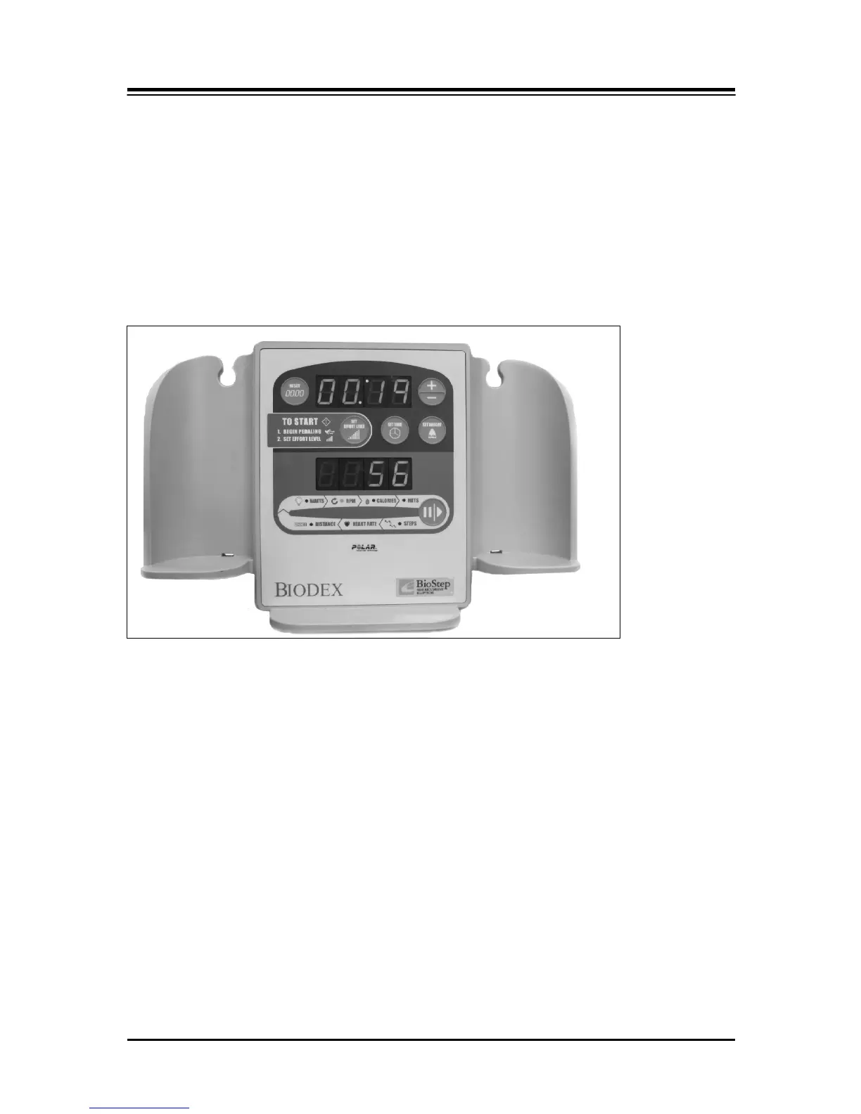 To power up the BioStep 2, simply begin pedaling or moving the arm cranks, or both. The