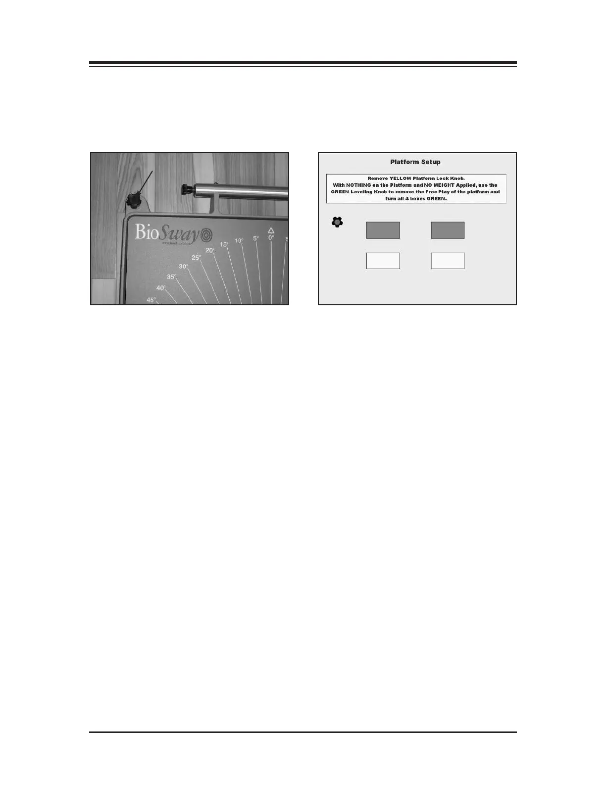 platform. When all four boxes on the display are green, the platform is level.