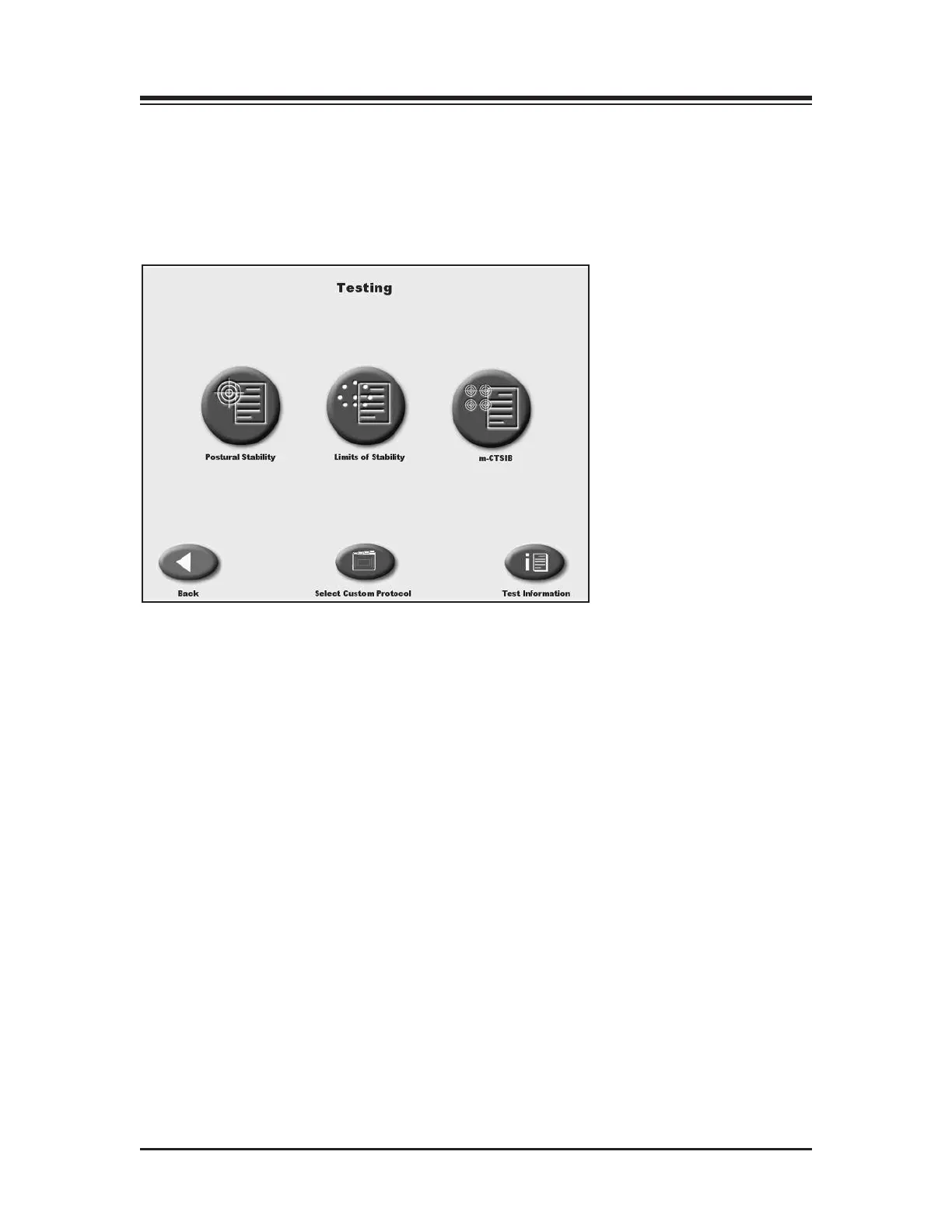 nclude Postural Stability, Limits of Stability, m-CTSIB and the ability to select previously