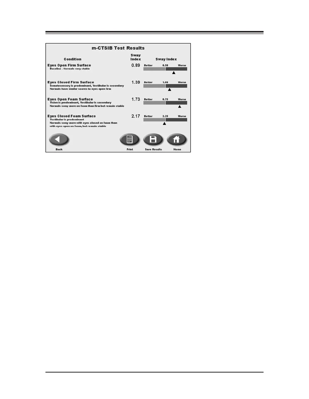 Figure 7.7. The m-CTSIB Test Results screen.