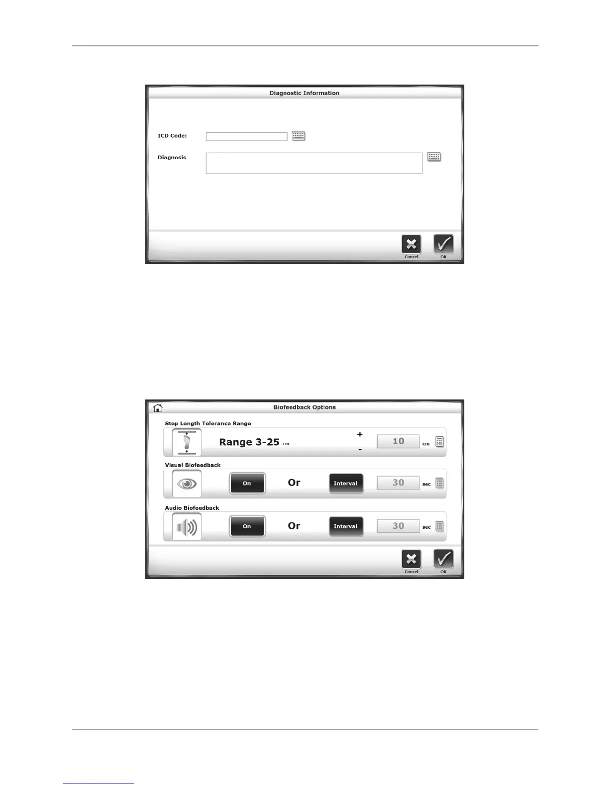 The Biofeedback screen is accessed from the Gait Training User Information screen by touching