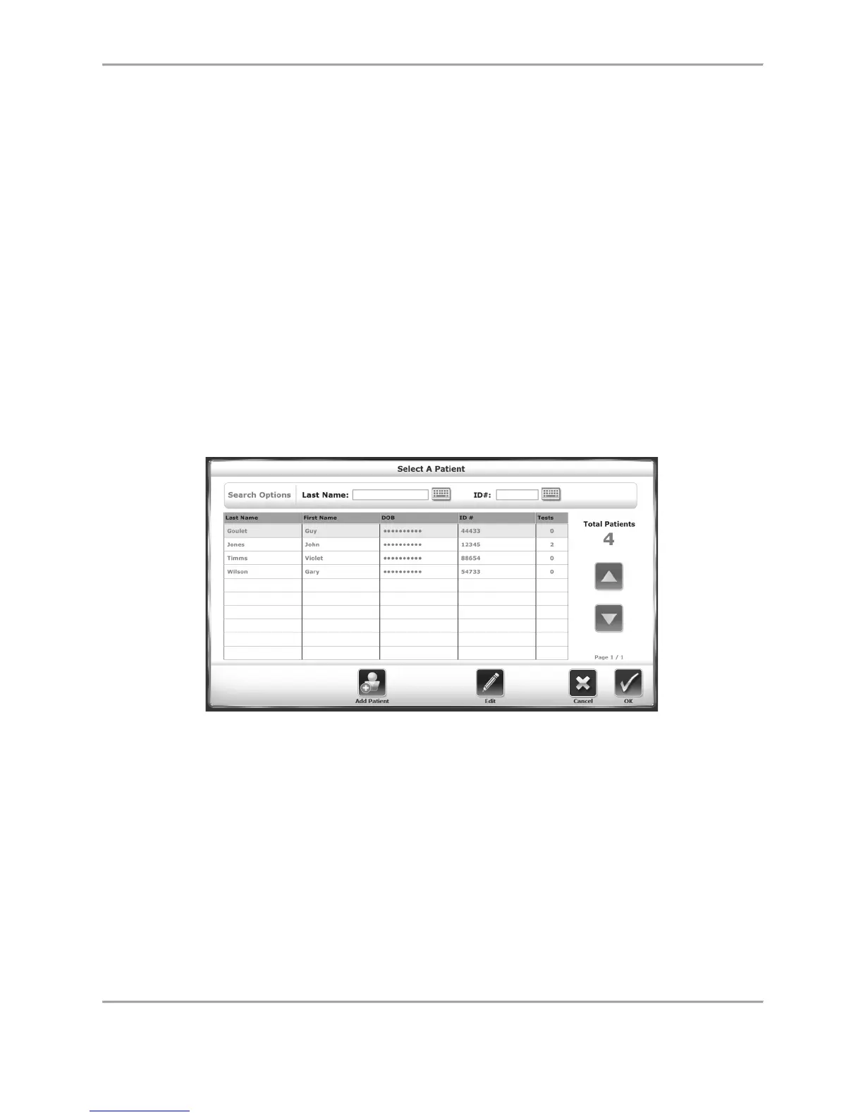 the patient. Select one of these fields and enter either a patient last name or the ID number.