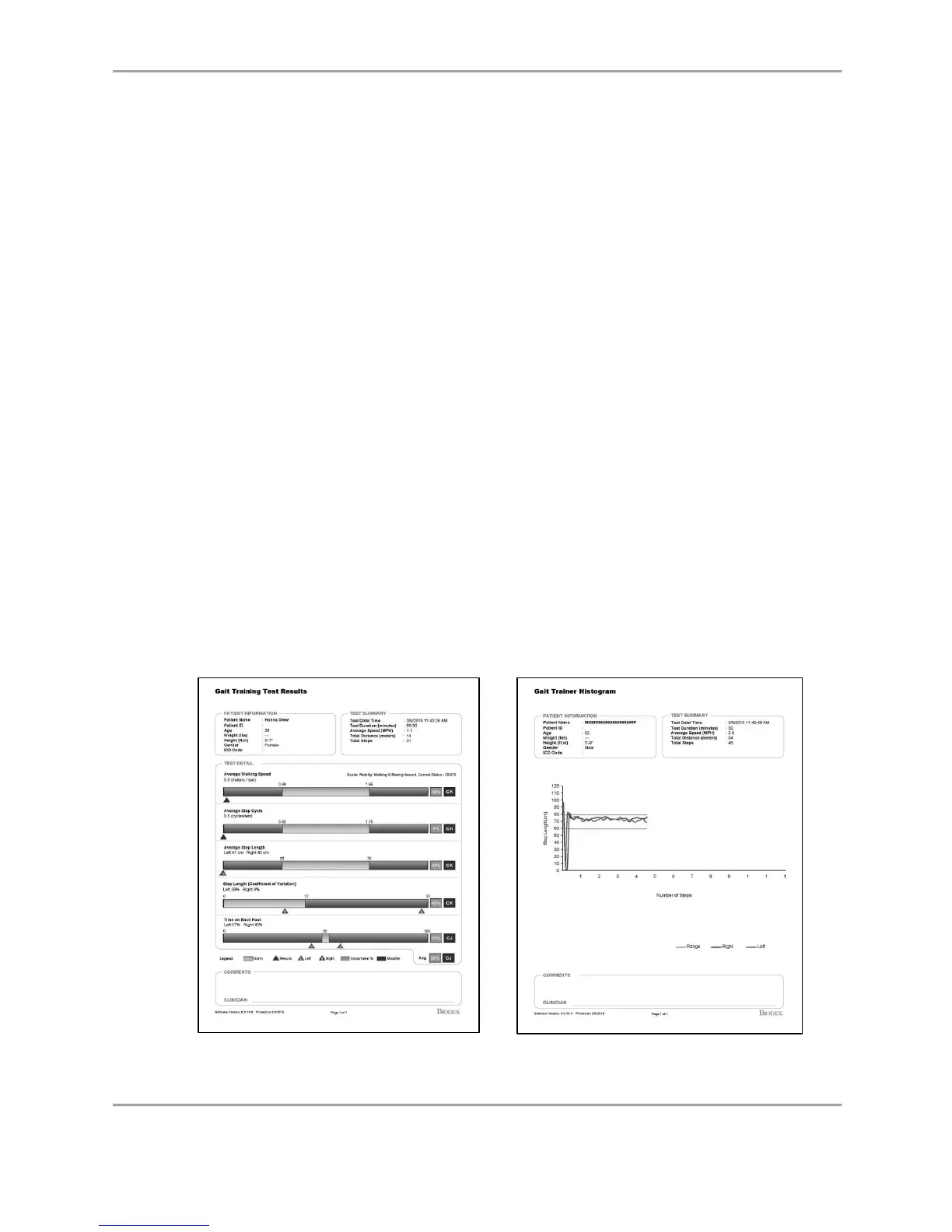 Figure 4.2 and Figure 4.3. Gait Trainer printouts include a Gait Training Test Results