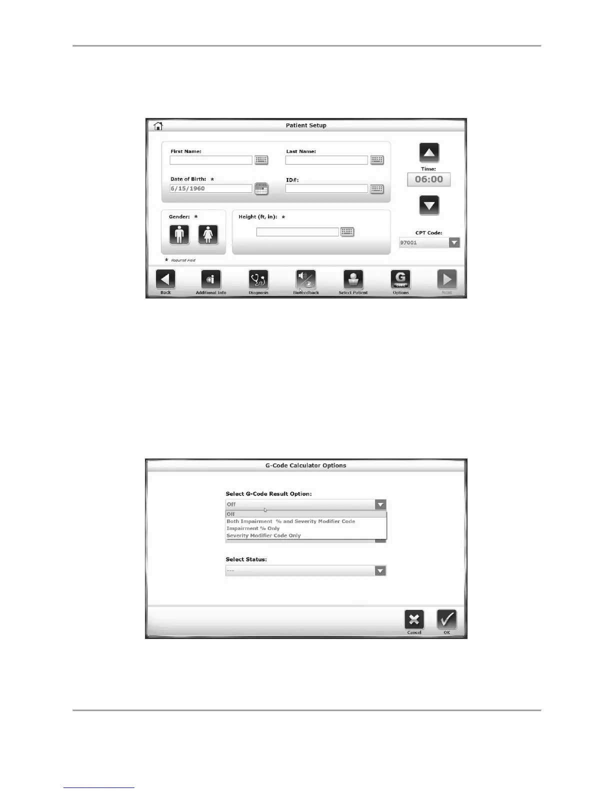 Figure 5.2. Patient Setup screen in the Gait Trainer interface. Using the G-code icon,