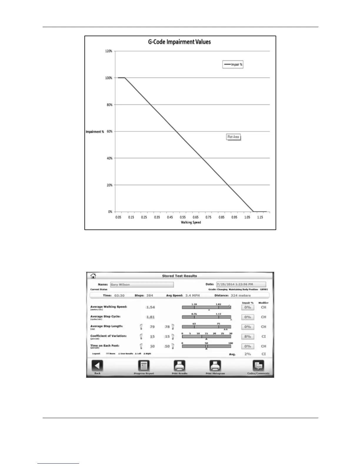 From the Stored Test Results screen, the therapist may also choose to alter the Impairment