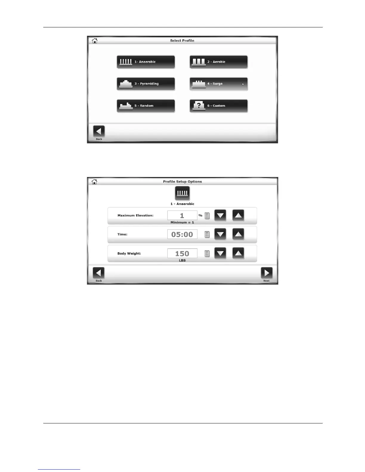 Figure 7.1. The Select Profile screen allows the user to choose from five pre-defined