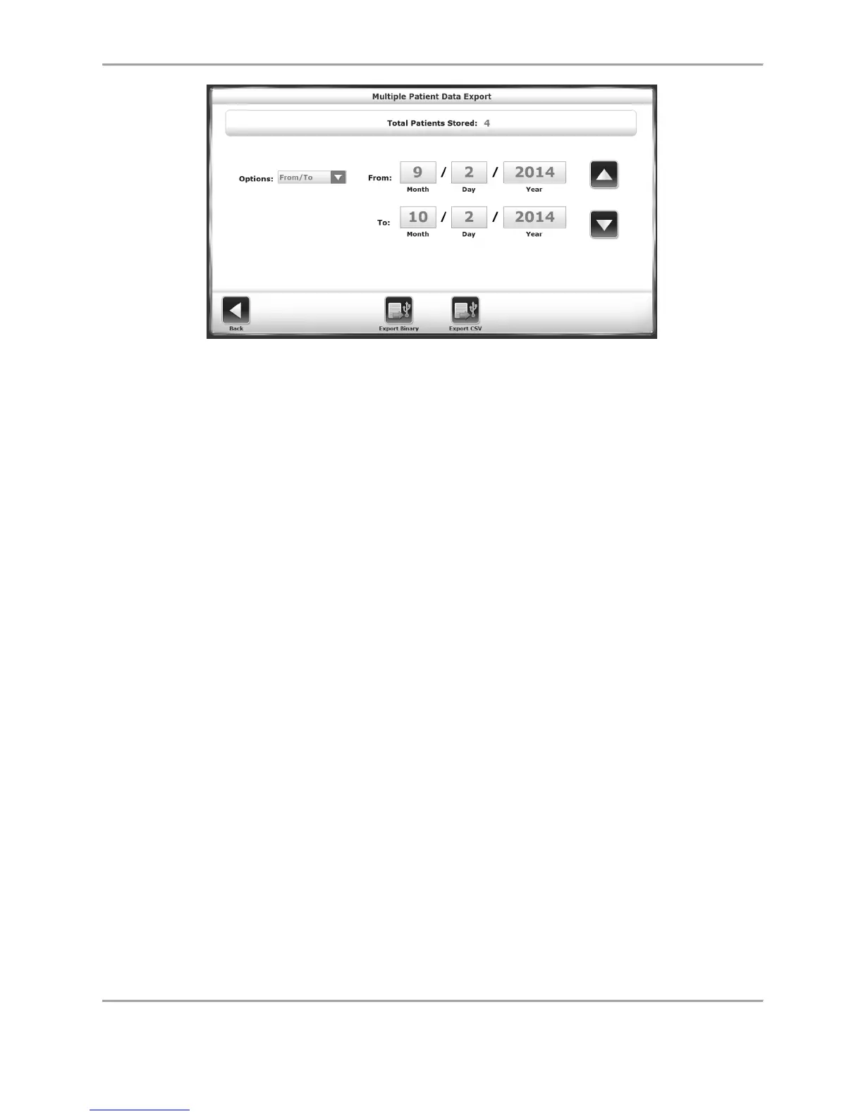Note: The user has the option to export patient data either to a Binary file or a CSV file, which