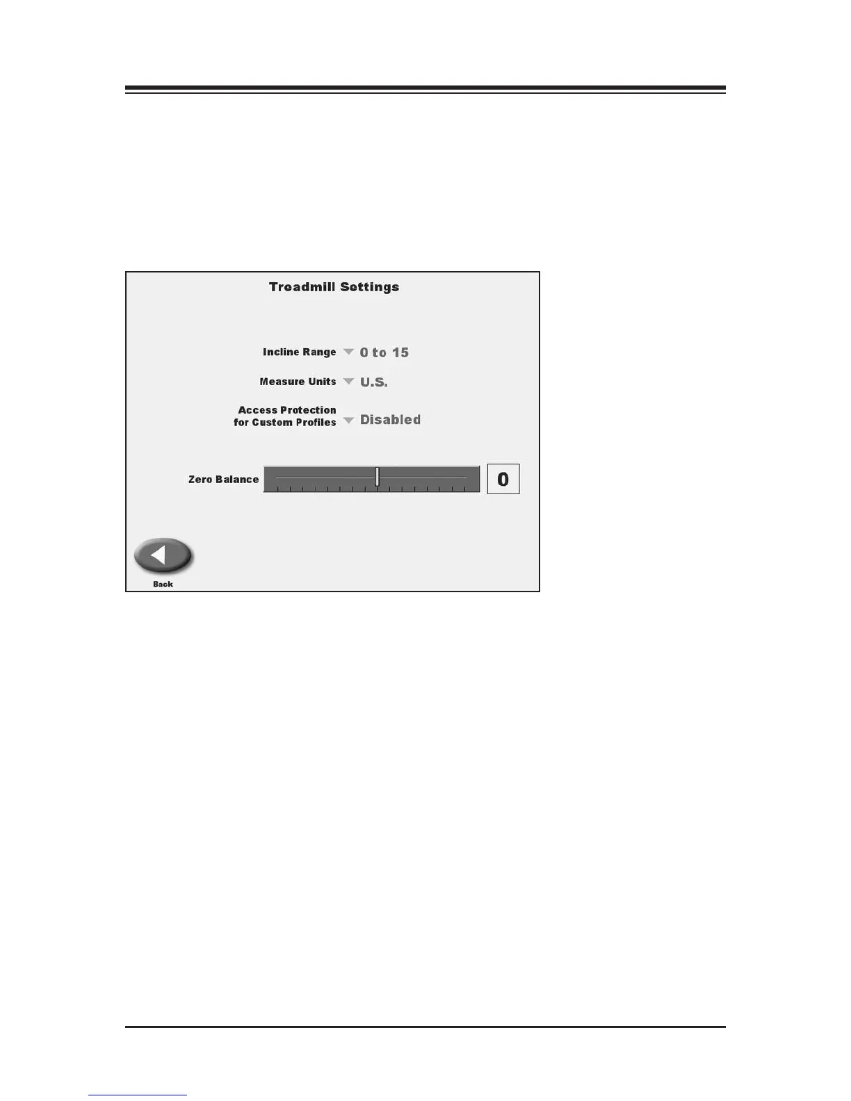 Figure 7.4. The Treadmill Settings screen.