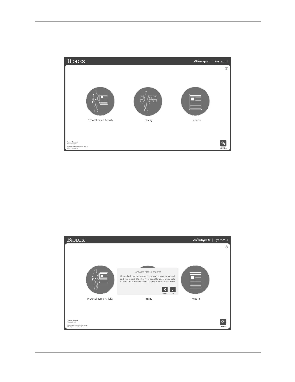 NOTE: If the application software cannot connect to the hardware, then it will display the below
