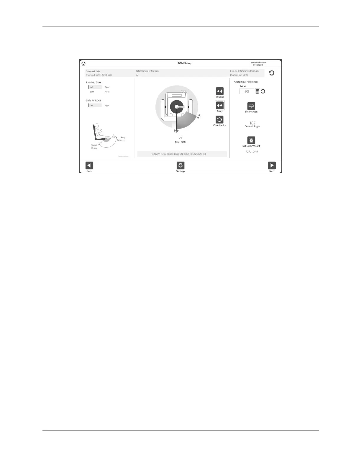 to record the position. Arrows will display at the Away limit and the ROM will be shaded
