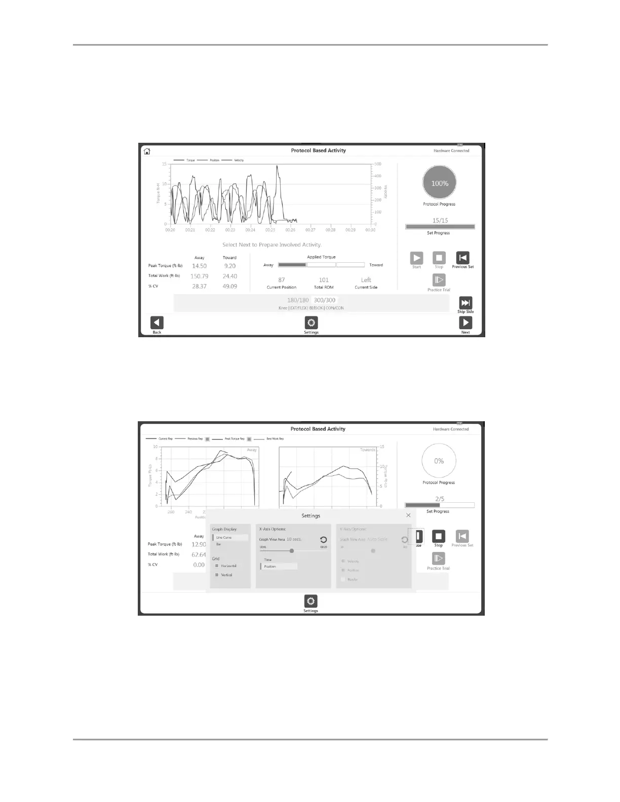 NOTE: The Settings icon can be used to change the way the activity