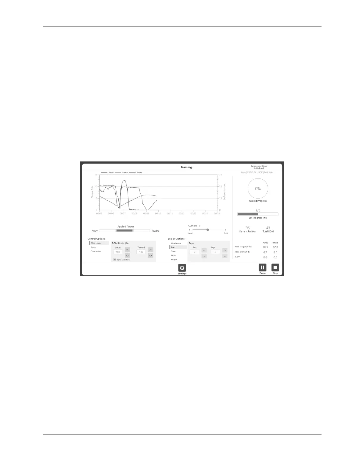 b. The bottom portion will display different control options (Speed, Torque, %ROM