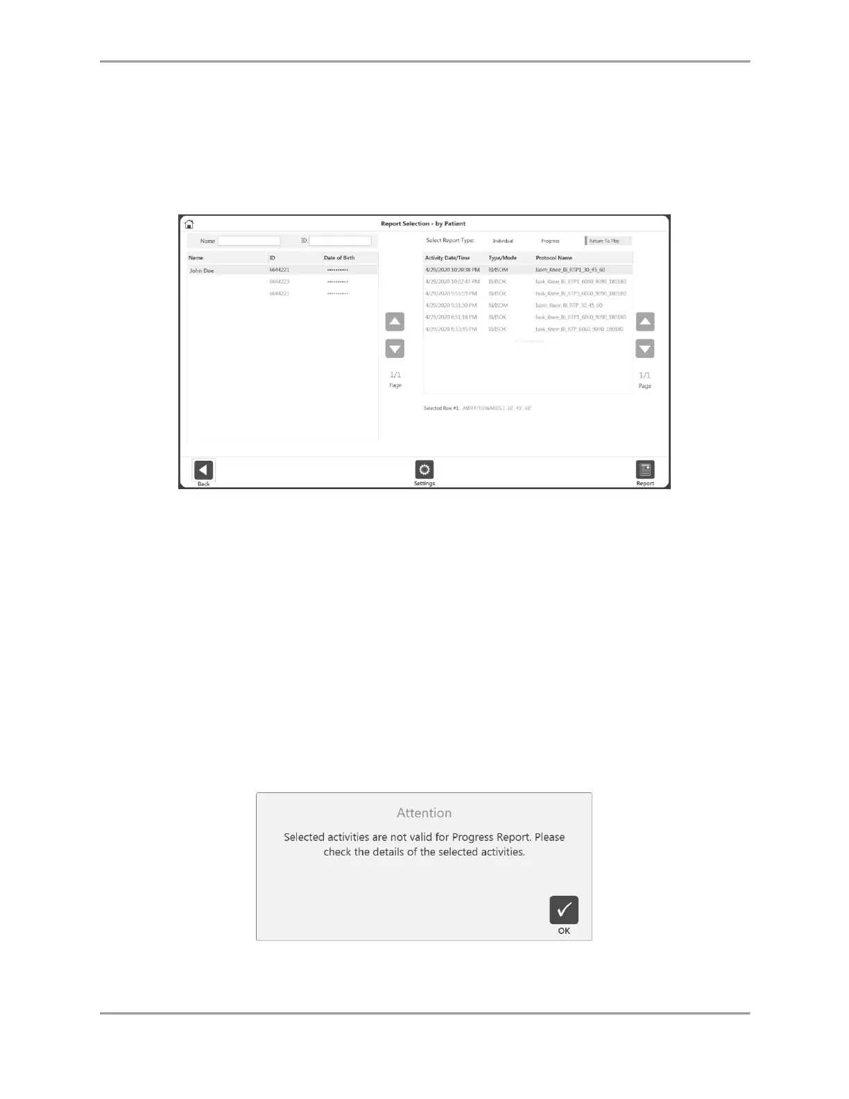 3. Select a Report Type: Individual, Progress, or Return to Play (see Return to Play section).