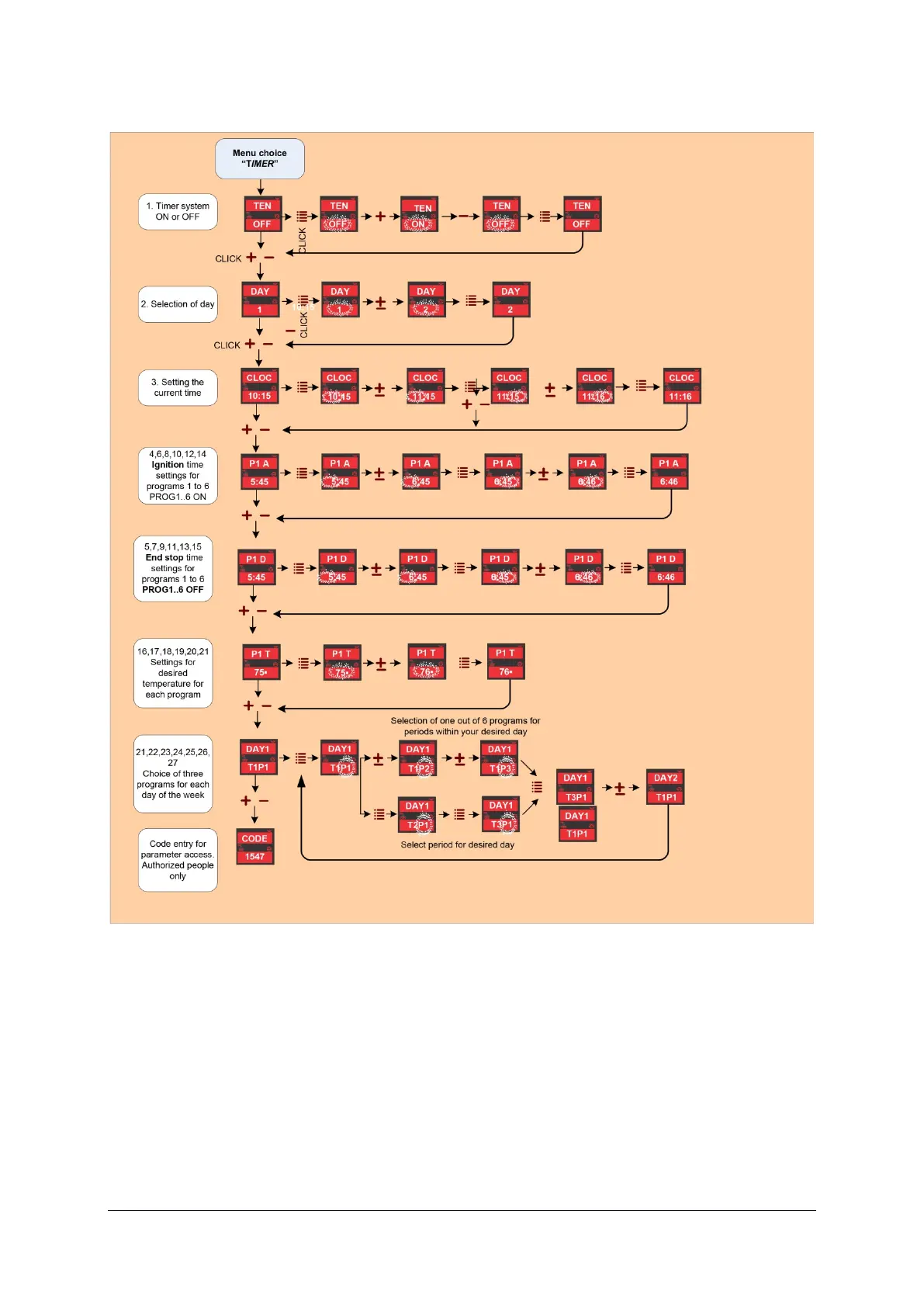 Biodom C15 - Timer Menu Navigation Steps