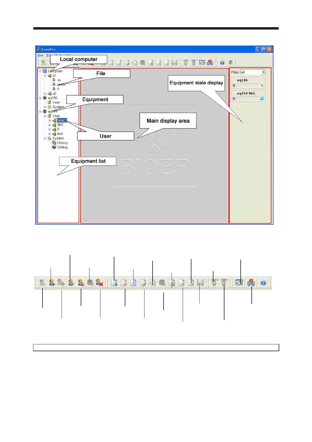 Bioer LifePro - Main Interface; Tool Bar; Basic Operation