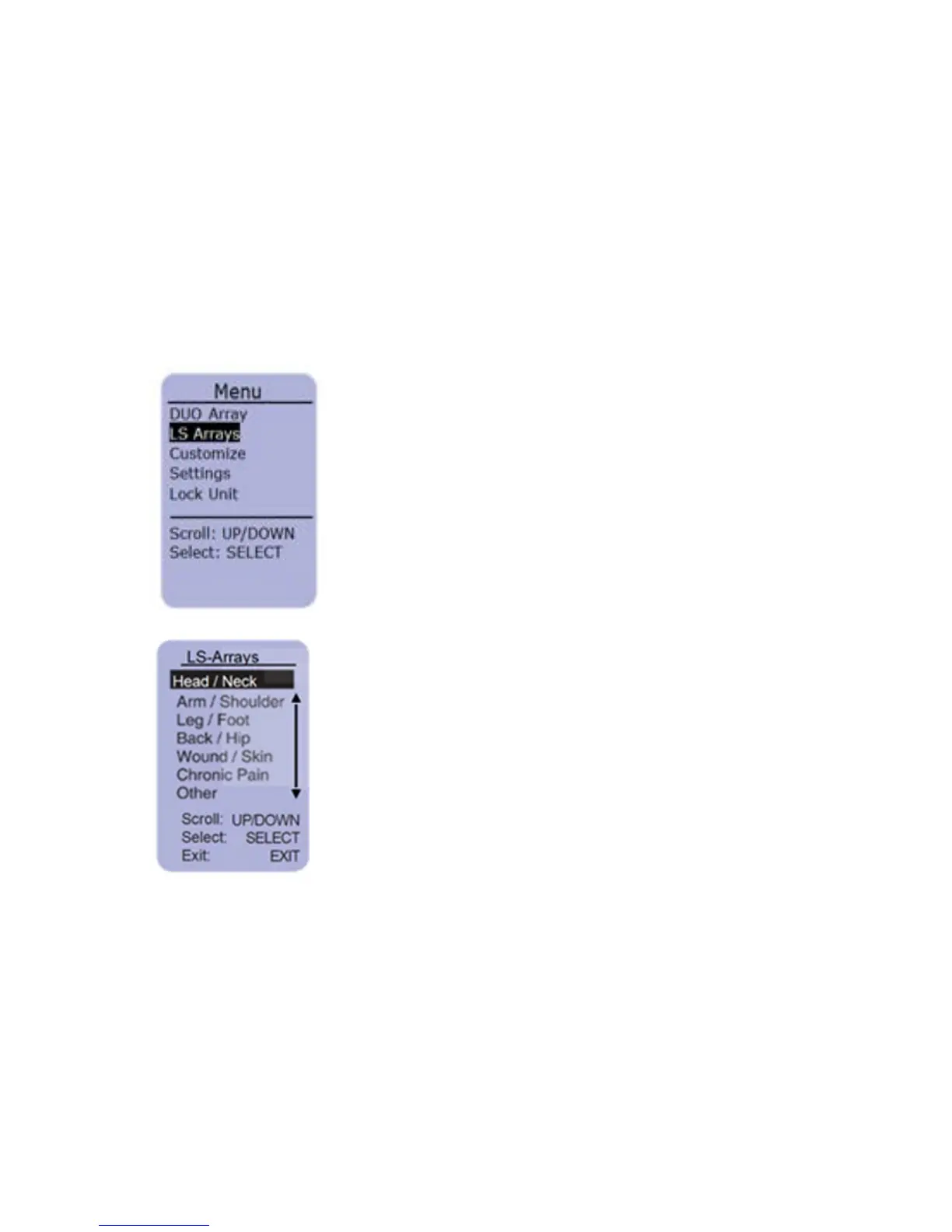 BIOFLEX Therapist - Operation; Main Screen Menu; LS-Arrays