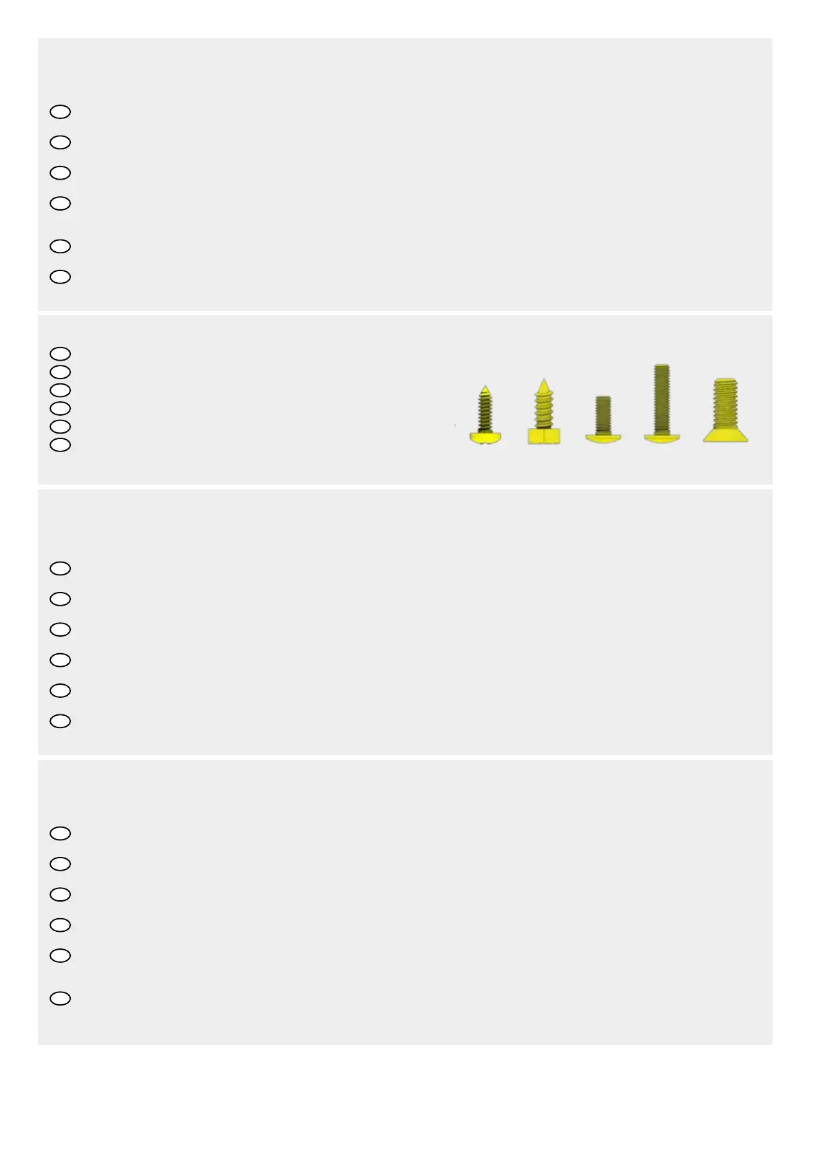 Tenere tutte le piccole parti o i materiali d‘imballaggio forniti lontano dalla portata dei bambini durante il montaggio. I componenti hanno