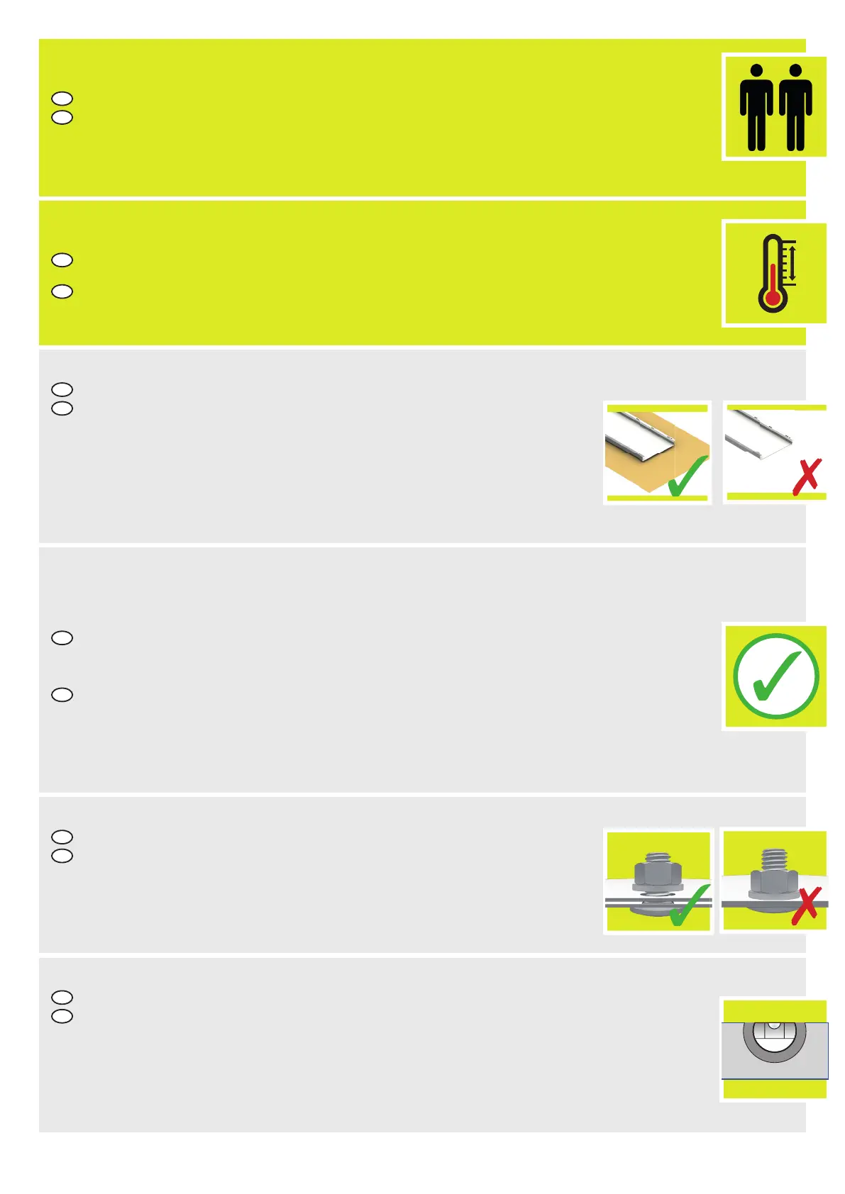 LEVEL SYMBOL! Align the respective parts by using a level.