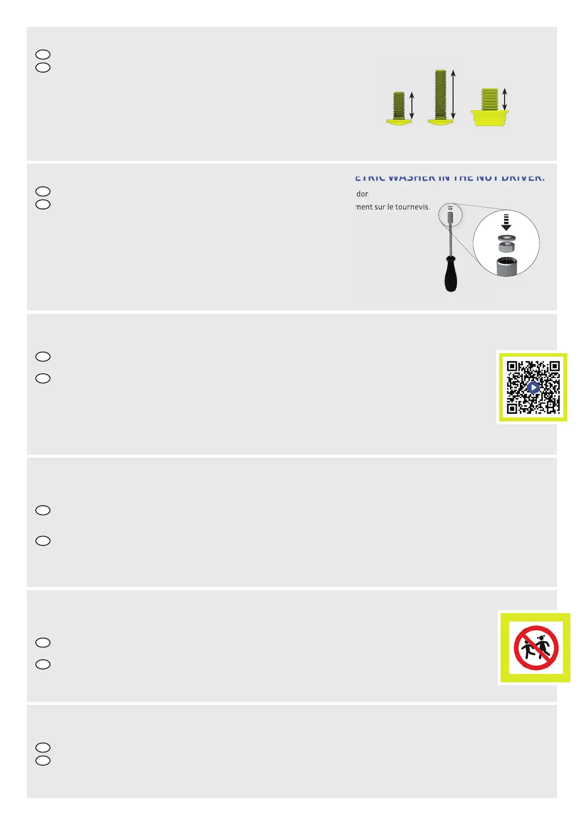 Pour faciliter le montage, veuillez positionner directement la rondelle et l’écrou directement sur le tournevis.
