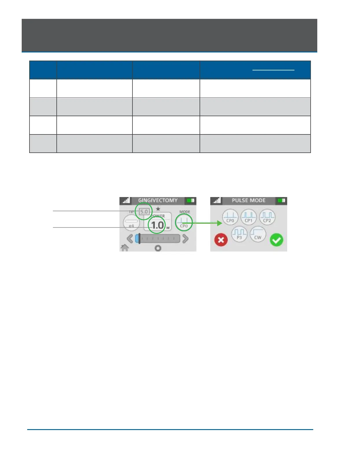 NOTE: Operating the laser at a shorter pulse duration typically results in lower tissue temperature.
