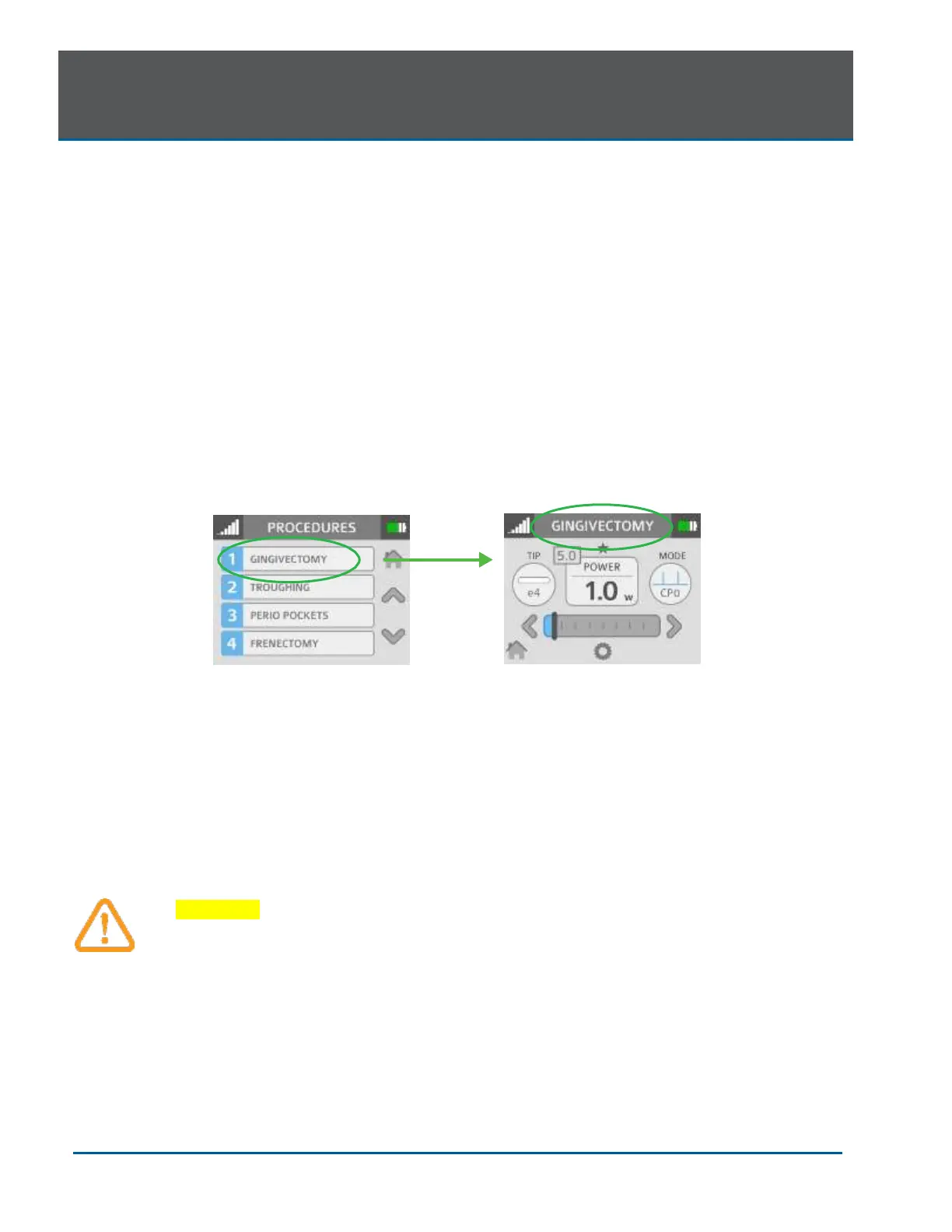 1. Go to the PROCEDURES menu by pressing the soft-tissue icon on the HOME screen;