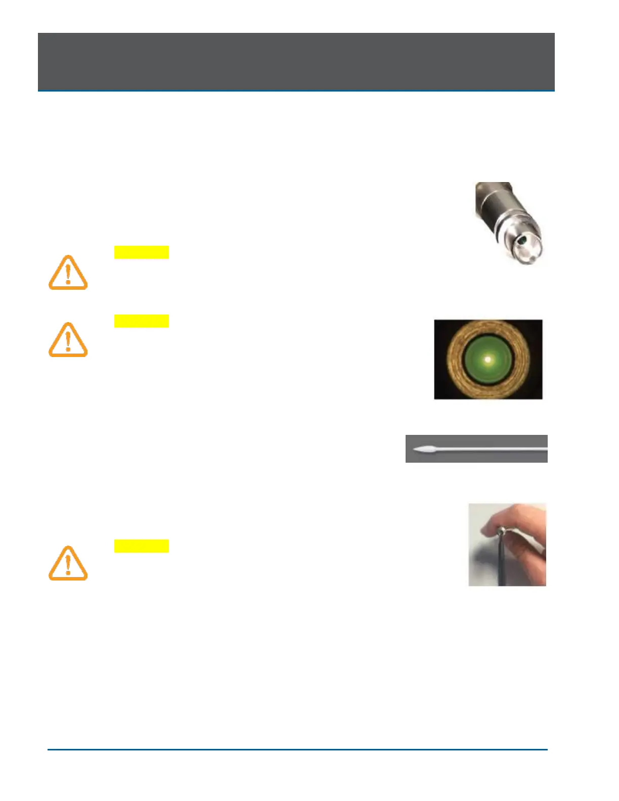 The lens is at the distal end of the Fiber Optic Cable (Figure 9.2); this is where debris may