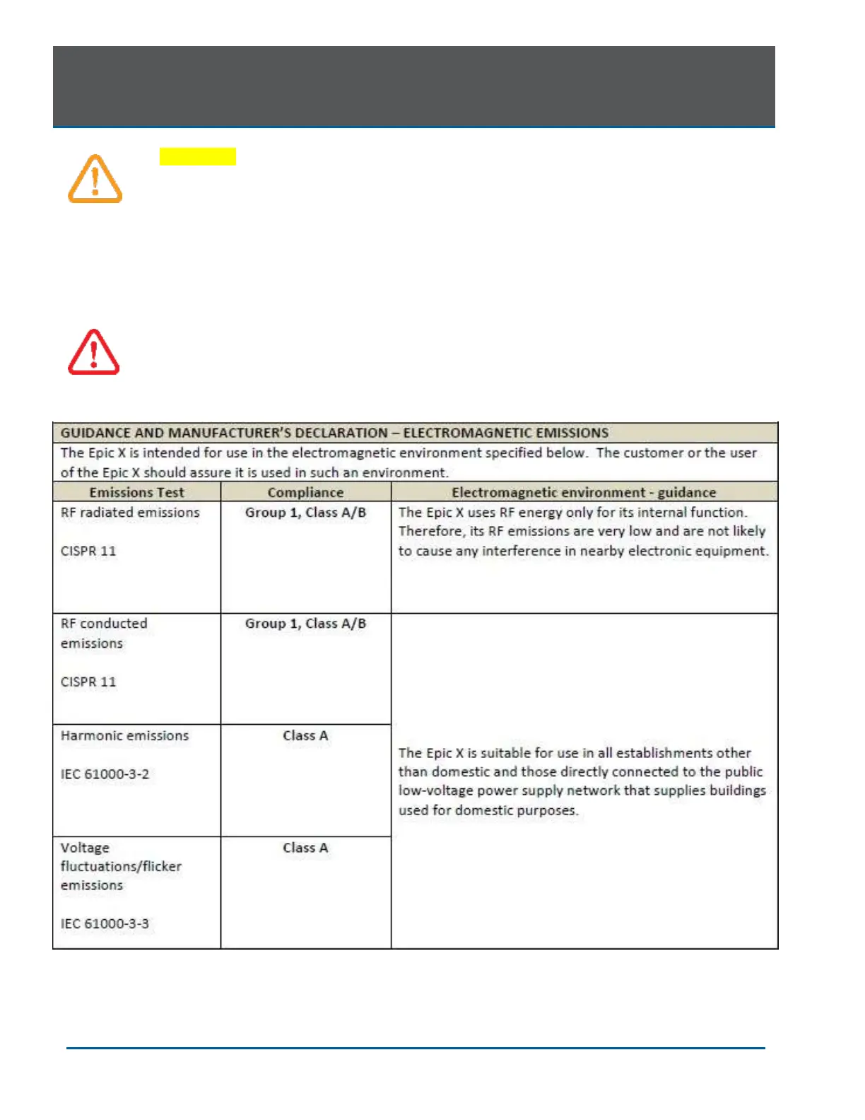 according to the EMC information provided in the following tables.