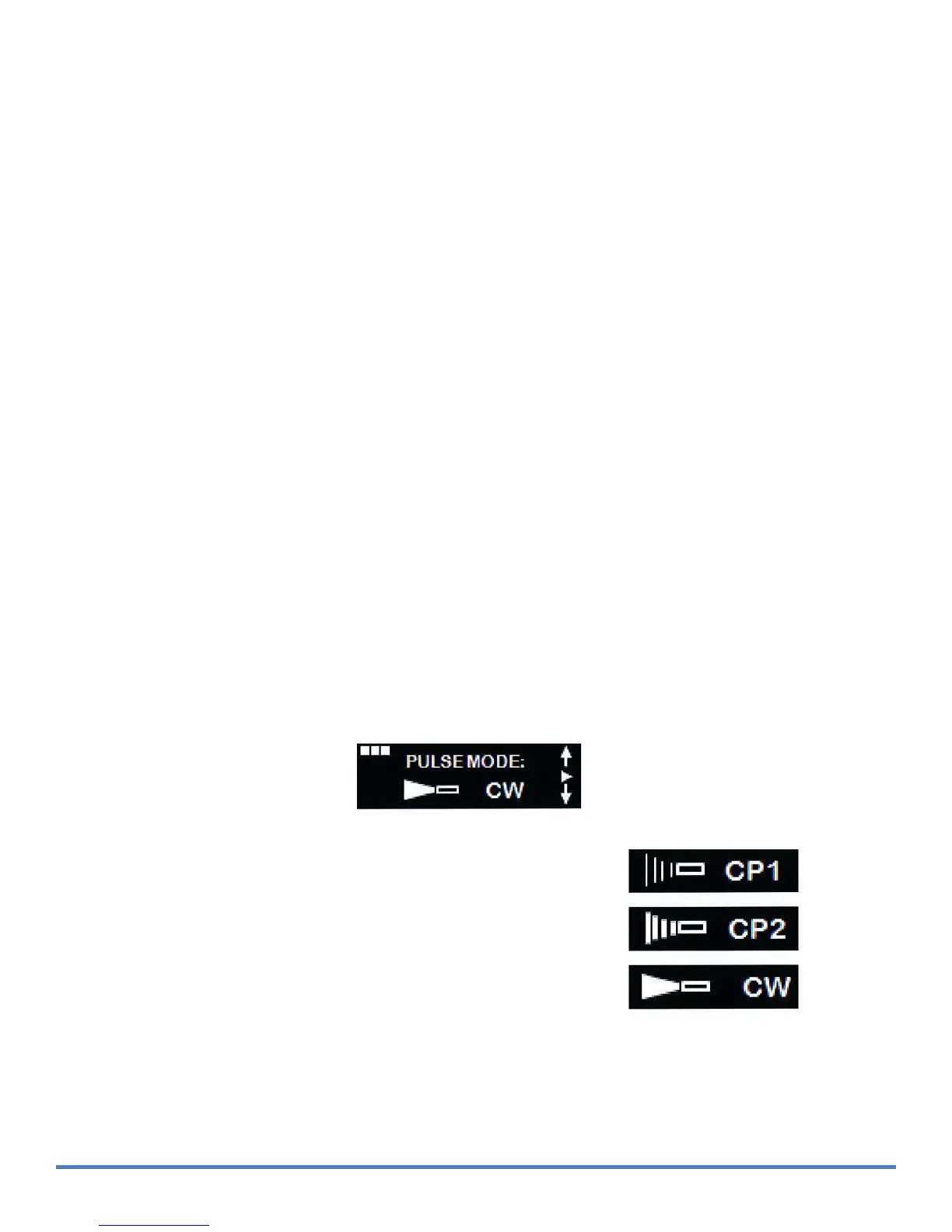 Pulse Mode menu; one of three available pulse modes can be chosen from that menu by using the