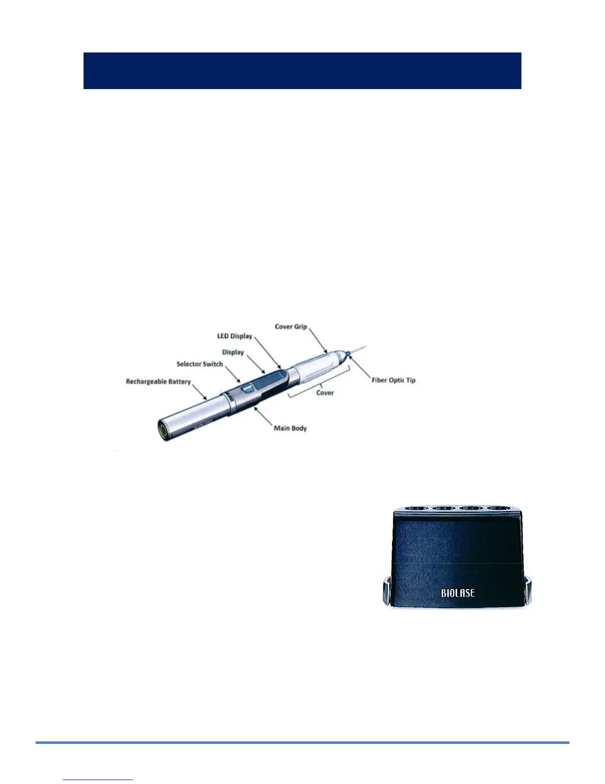 LED (OLED) display, and rechargeable battery. The iLase Handpiece delivers laser energy, under
