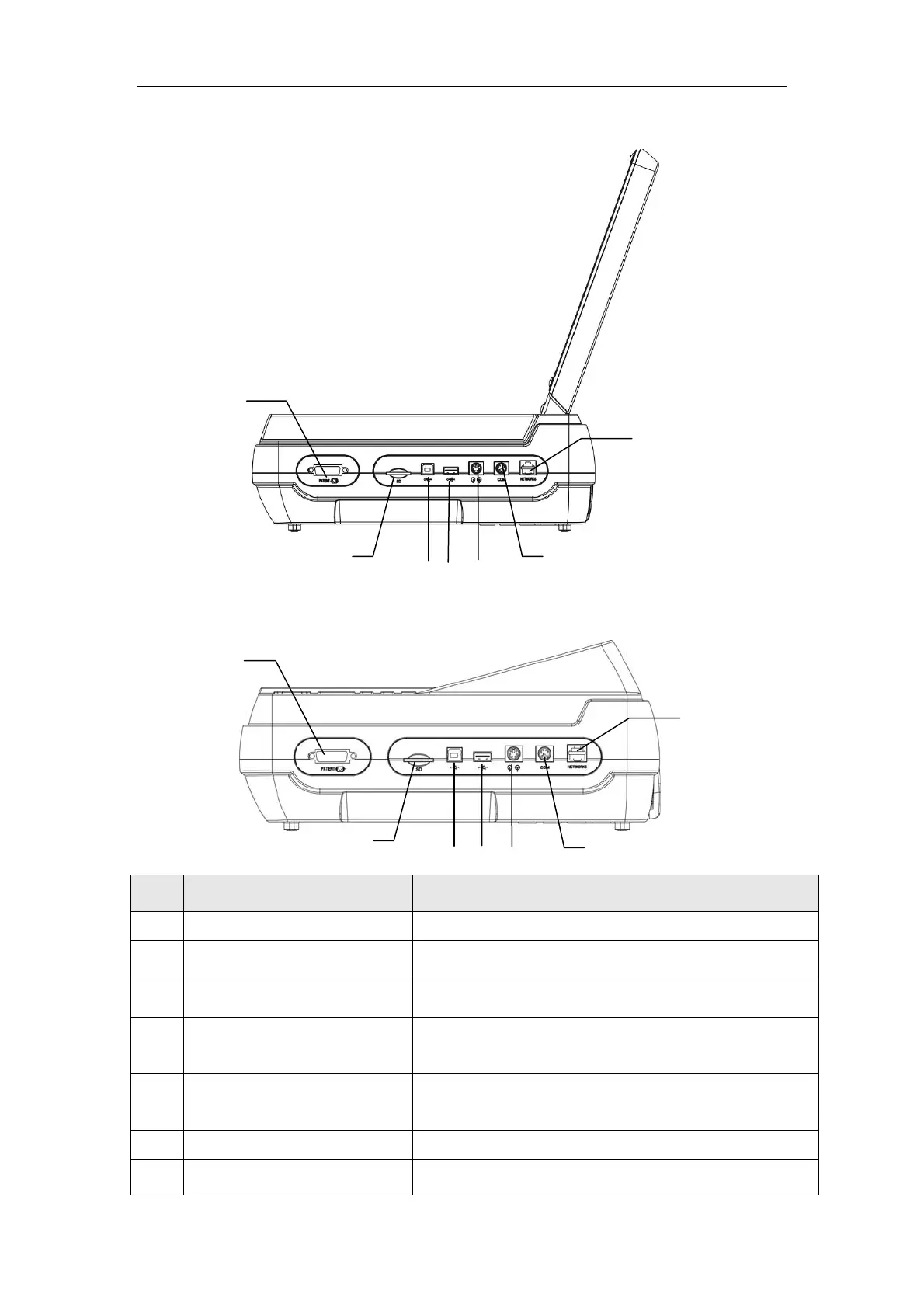 7 Patient cable socket Connect to patient cable