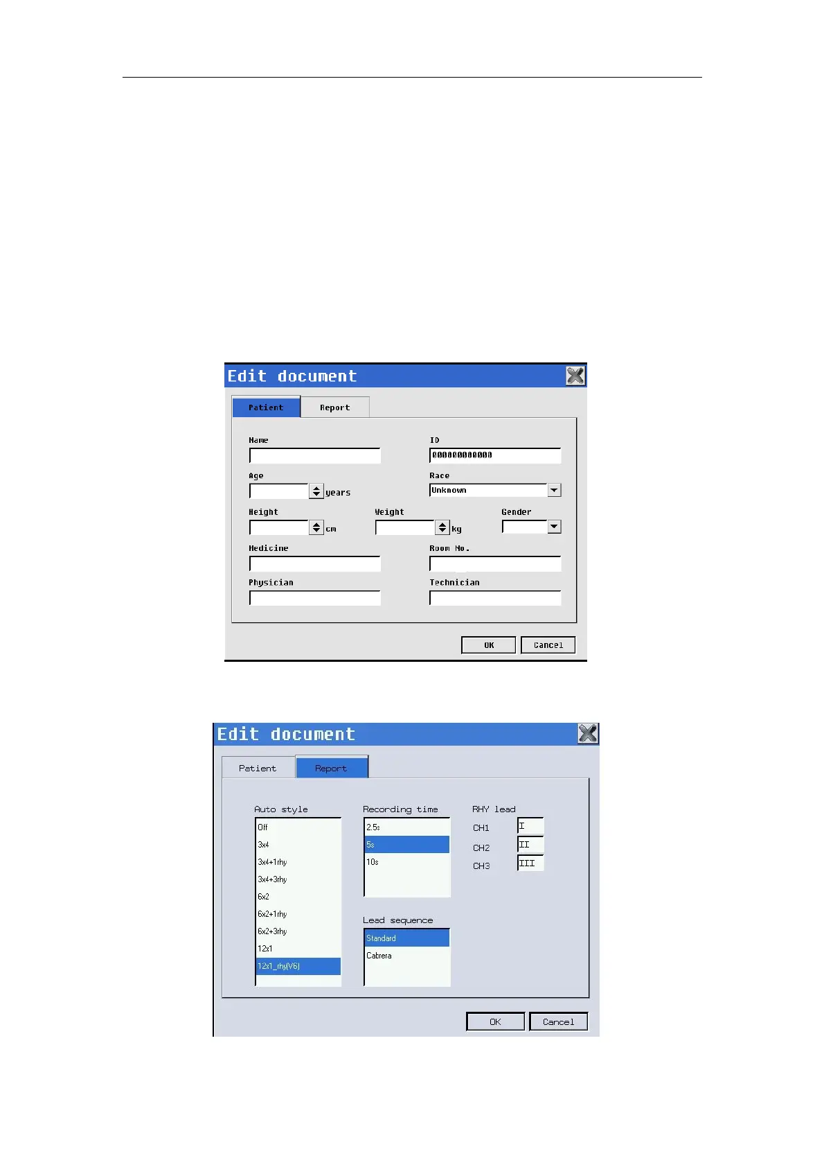 edit the patient info and report info according to the following chart.