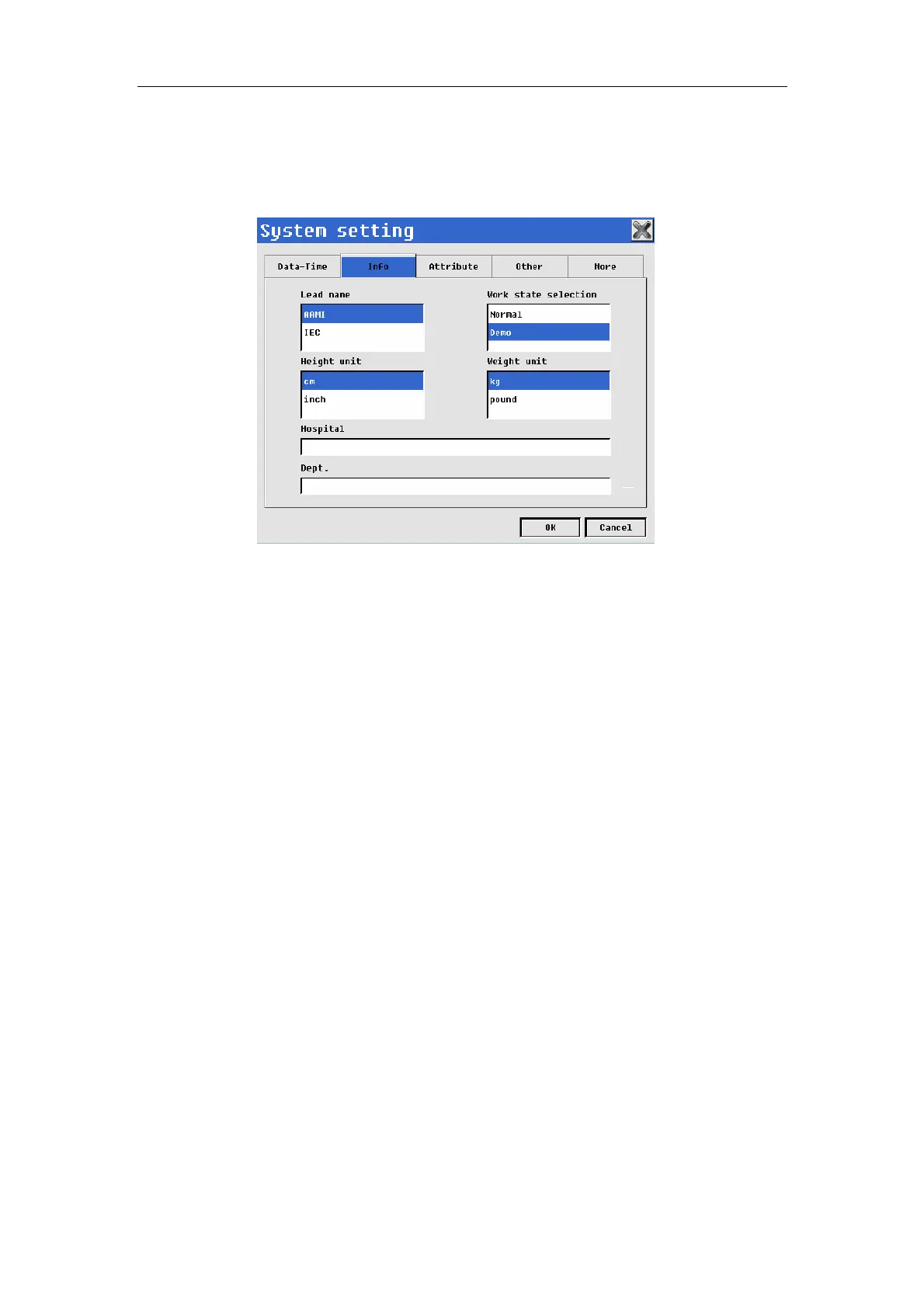 ——Select【Height unit】: May select unit of patient height: “cm” or “inch”.