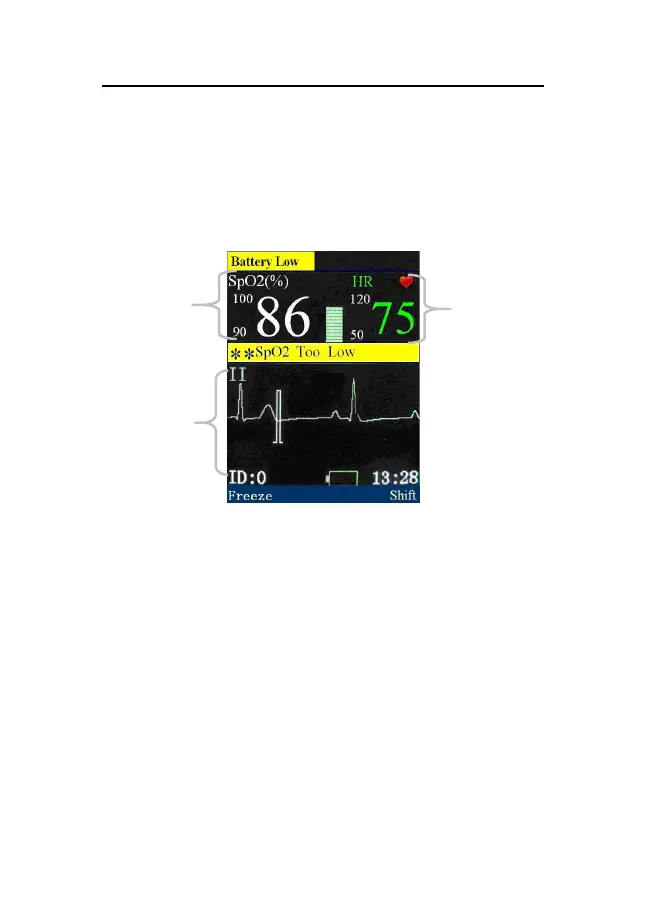 1. ECG waveform display area: Waveform shown in the