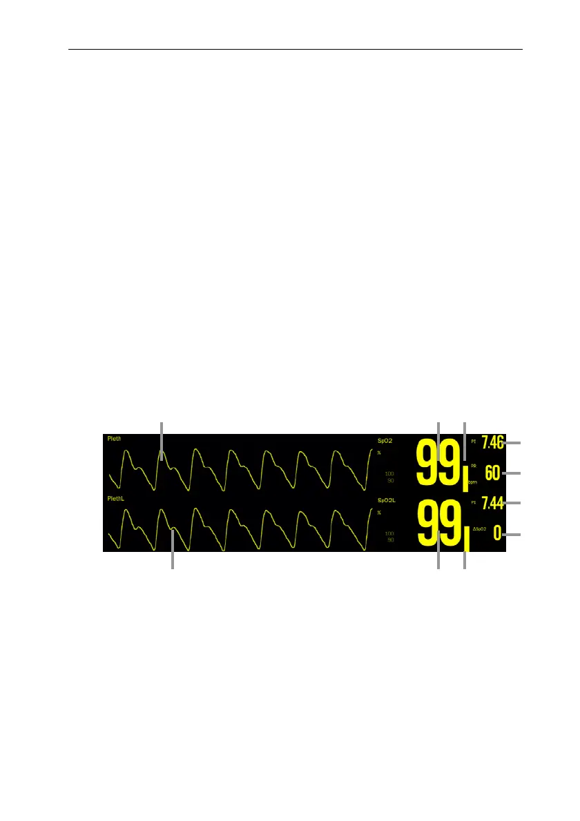 (1) Pleth waveform (Pleth/PlethL): The amplitude of the Pleth/PlethL waveform can