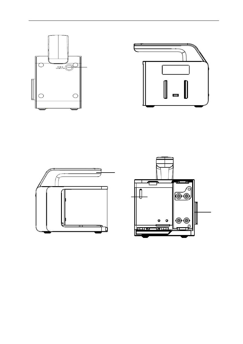 1. Handle 2. DC power supply connector: Connect the power adapter