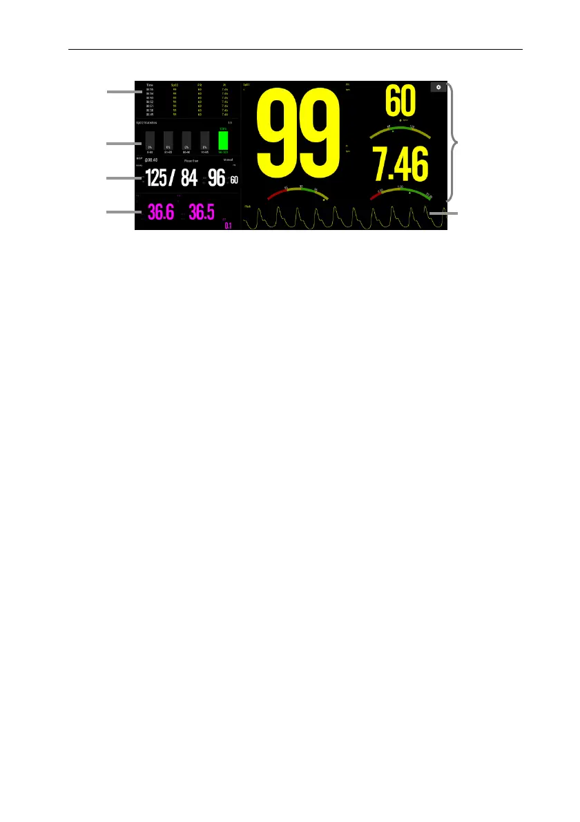3. NIBP parameter area: Display the measurement value and alarm limit of NIBP.