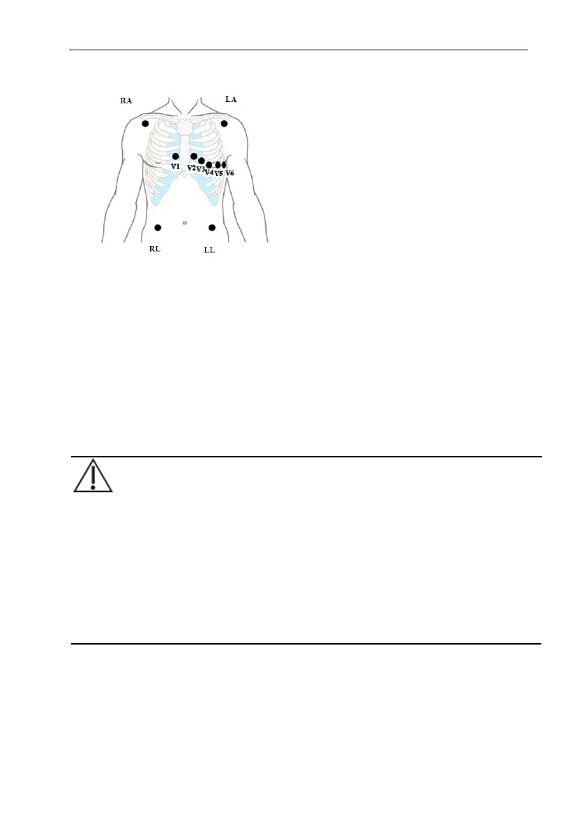 placed at left side of chest midst. Do not place the electrodes on the upper arm. Otherwise,