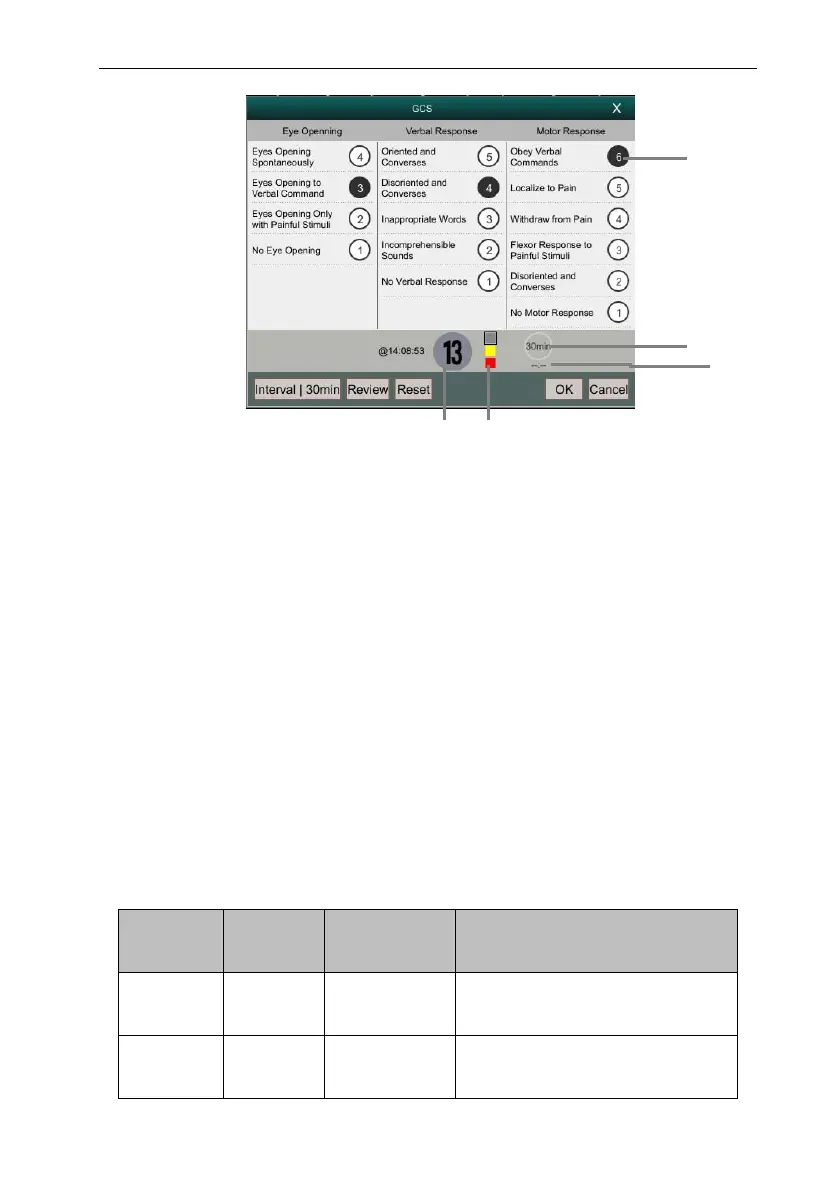 1. In the 【GCS】 menu, select an option corresponding to the patient status