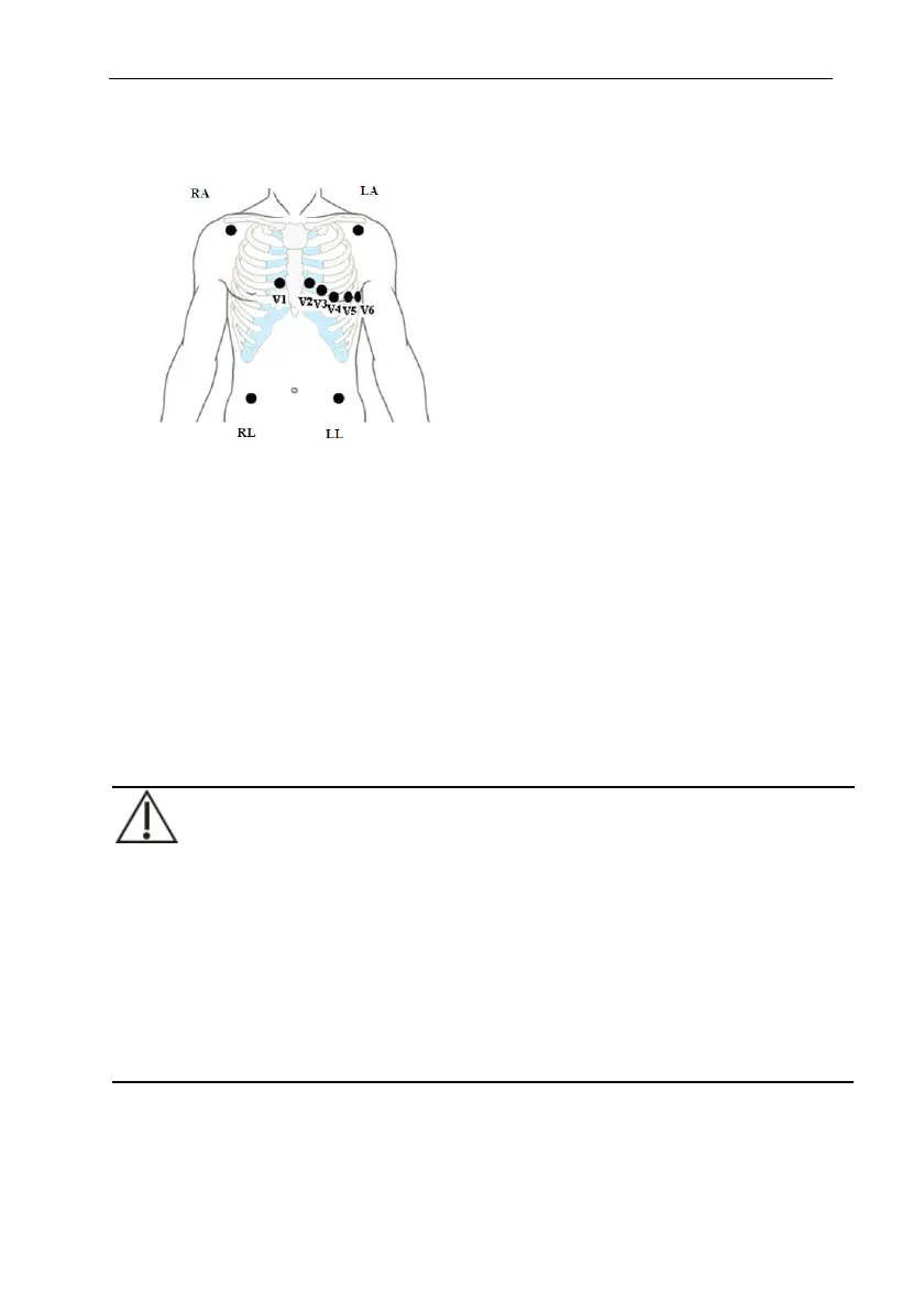 placed at left side of chest midst. Do not place the electrodes on the upper arm. Otherwise,