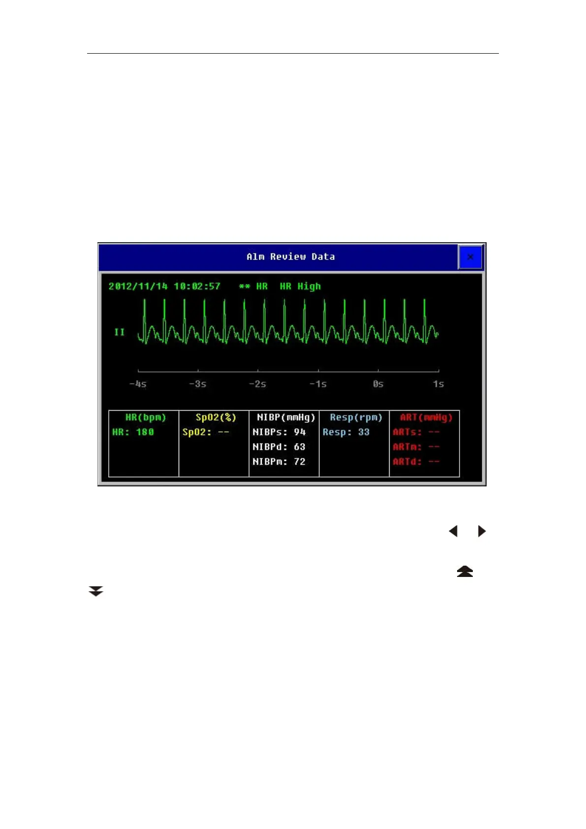 When a parameter alarm occurs, the monitor can store all the parameters’