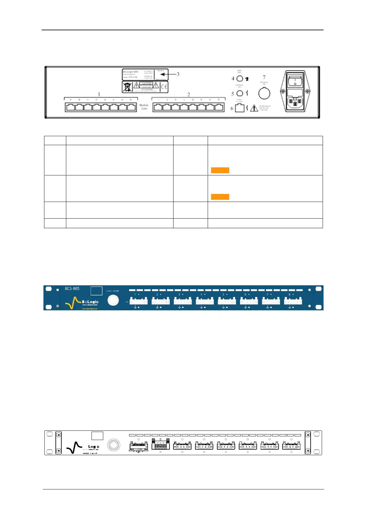 Table 2 : Detailed BCS-COM rear panel description