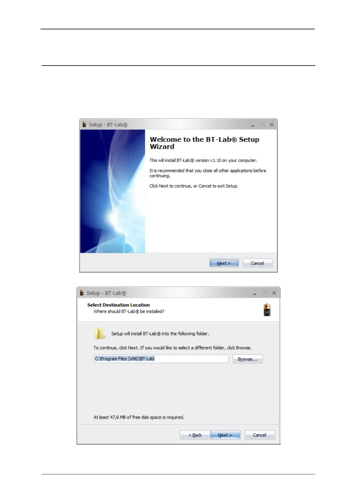 launched with the “Autorun” function. The first software to be installed is BT-Lab